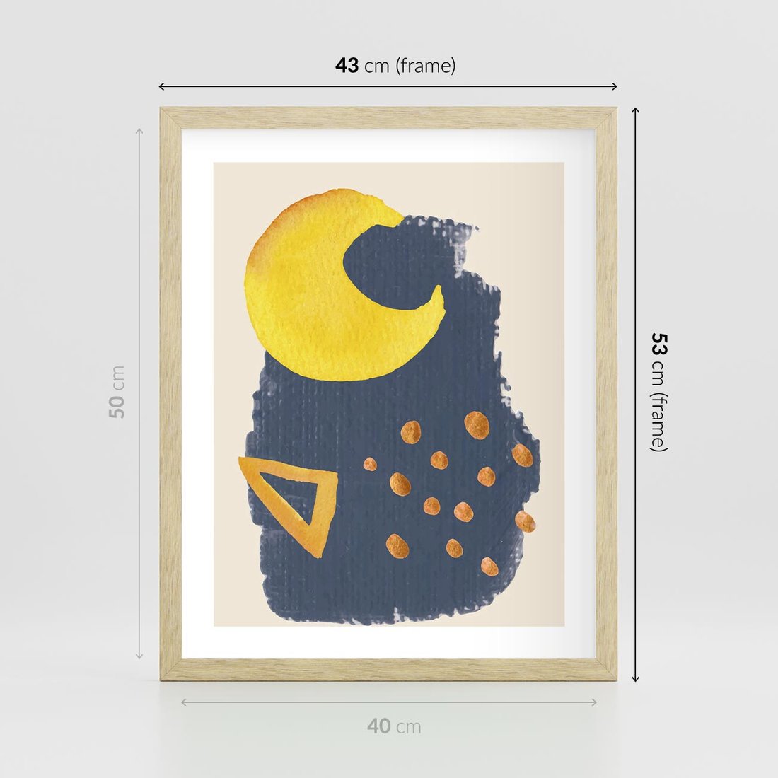 Nasz plakat to abstrakcyjna akwarelowa plama w intensywnym granatowym odcieniu, z tłem przedstawiającym księżyc. To wyjątkowe dzieło sztuki wprowadzi tajemniczą i mistyczną atmosferę do Twojej przestrzeni, zachwycając wyrazistym kontrastem i emocjonalnym oddziaływaniem.