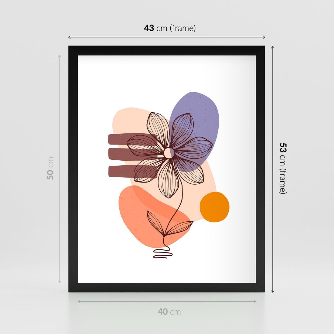 Nasza abstrakcyjna sztuka łączy plamy i kwiat w wyjątkowej grafice. To twórcze połączenie tworzy dynamiczną kompozycję pełną wyrazu i nowatorskiej formy.