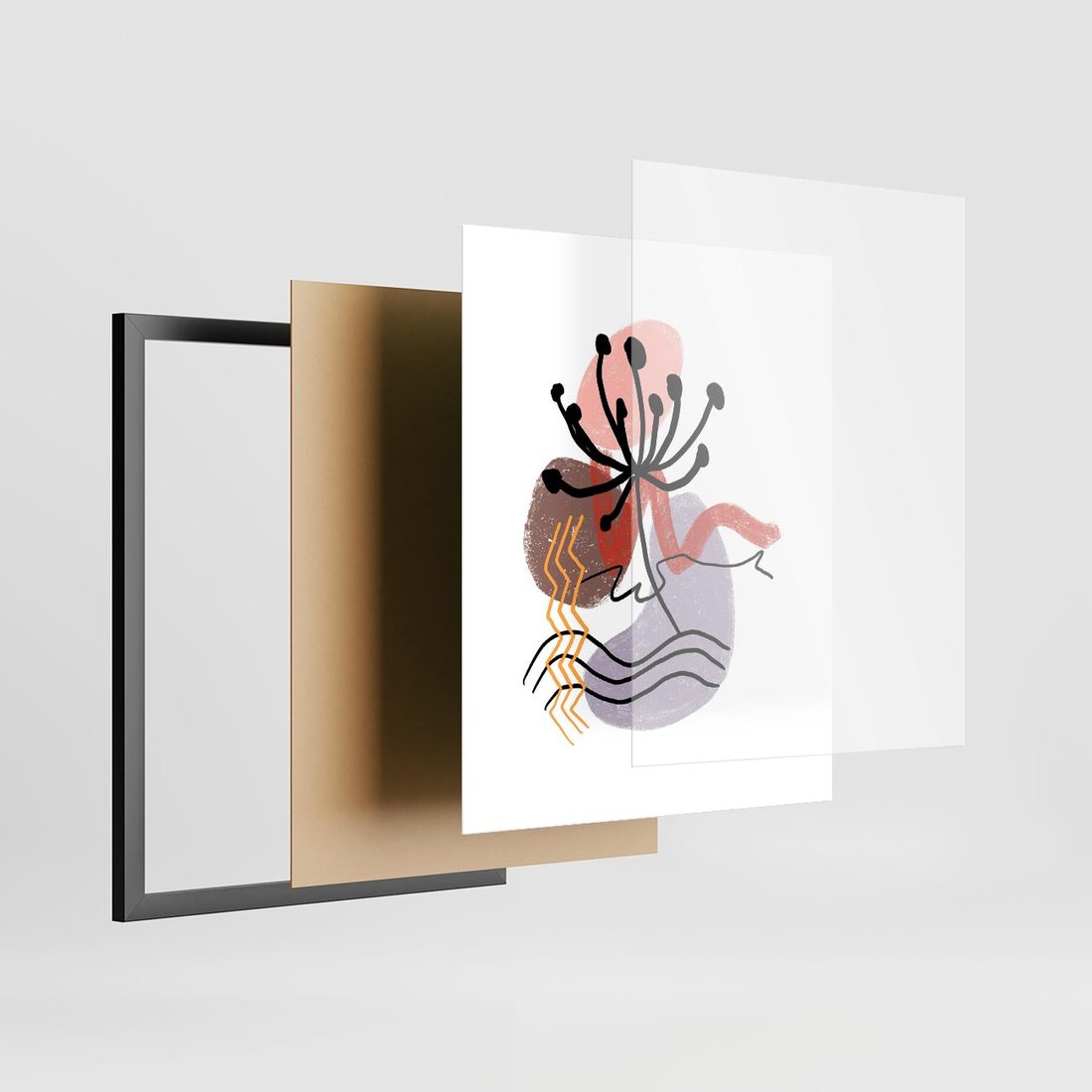 Plakat w ramie 40x50 - Migocące Odsłony - abstrakcyjna sztuka, liść dmuchawiec - rama czarna