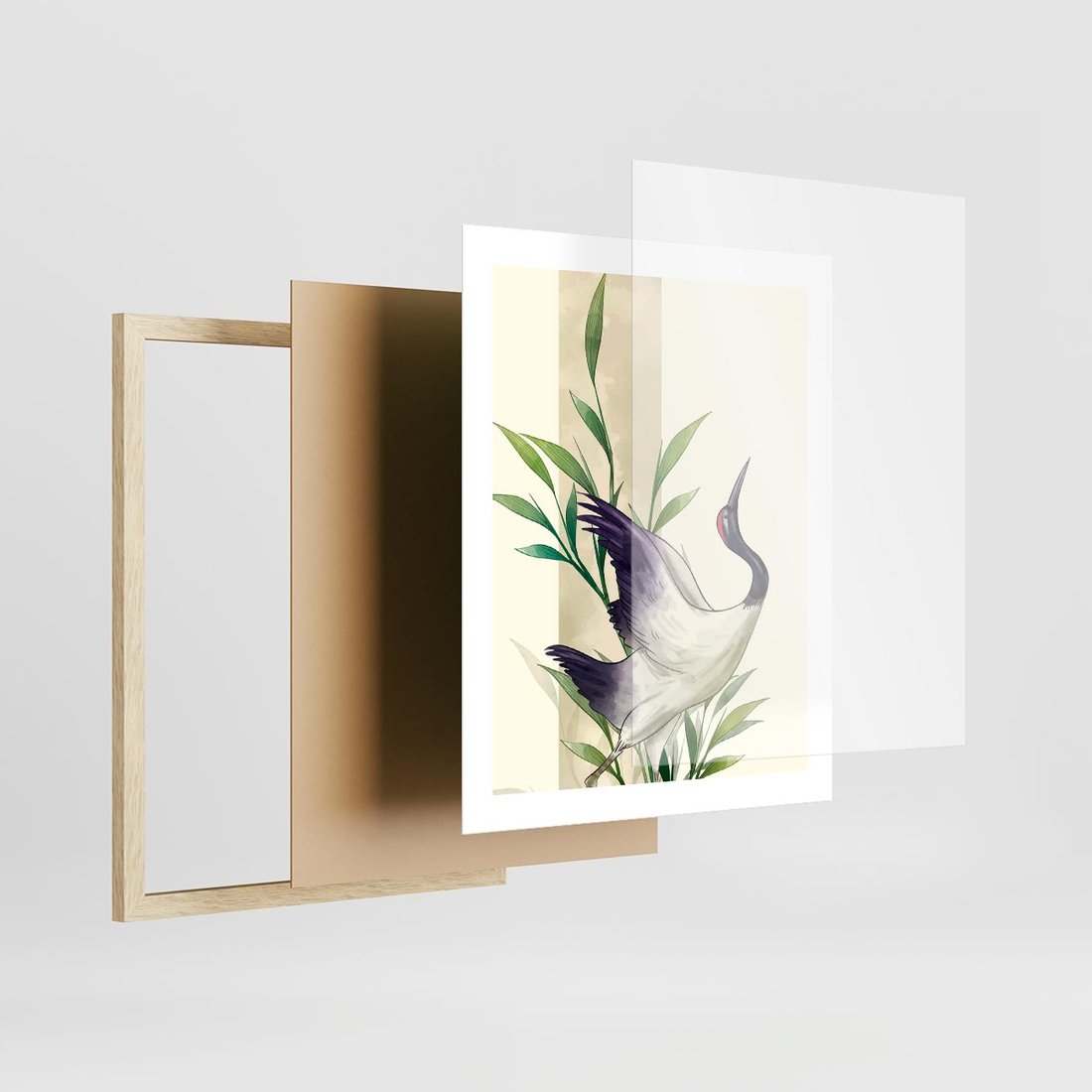 Plakat w ramie 40x50 - Migocące Ptaki - japońska sztuka, ptak - rama drewno