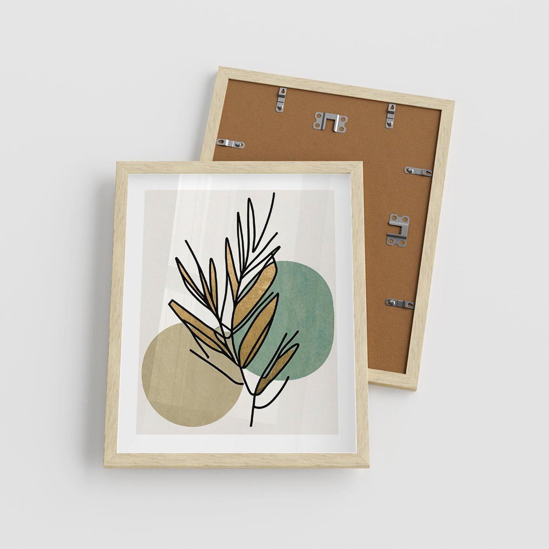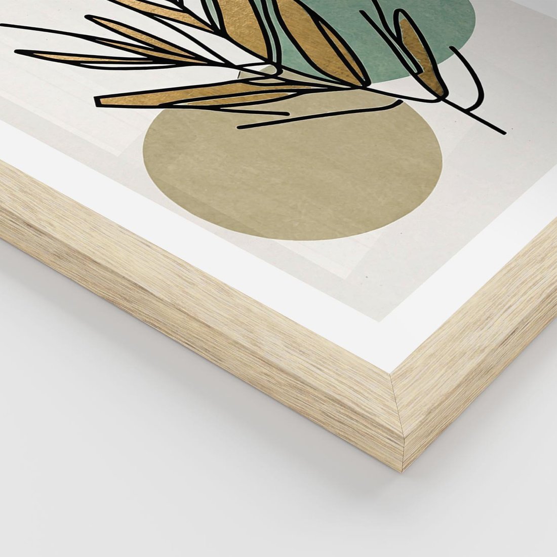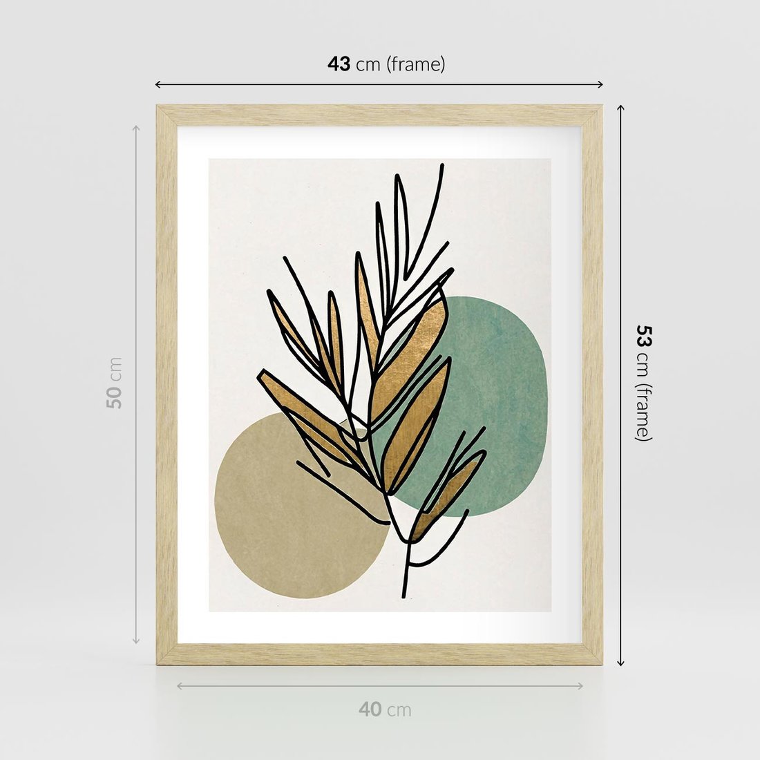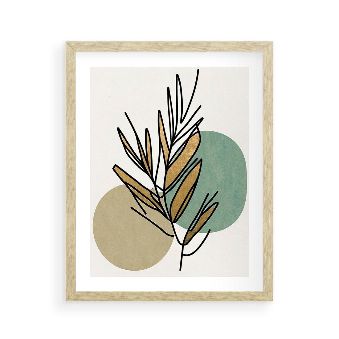 Plakat w ramie 40x50 - Migocące Ścieżki Wizji - abstrakcyjny obraz boho, liście - rama drewno
