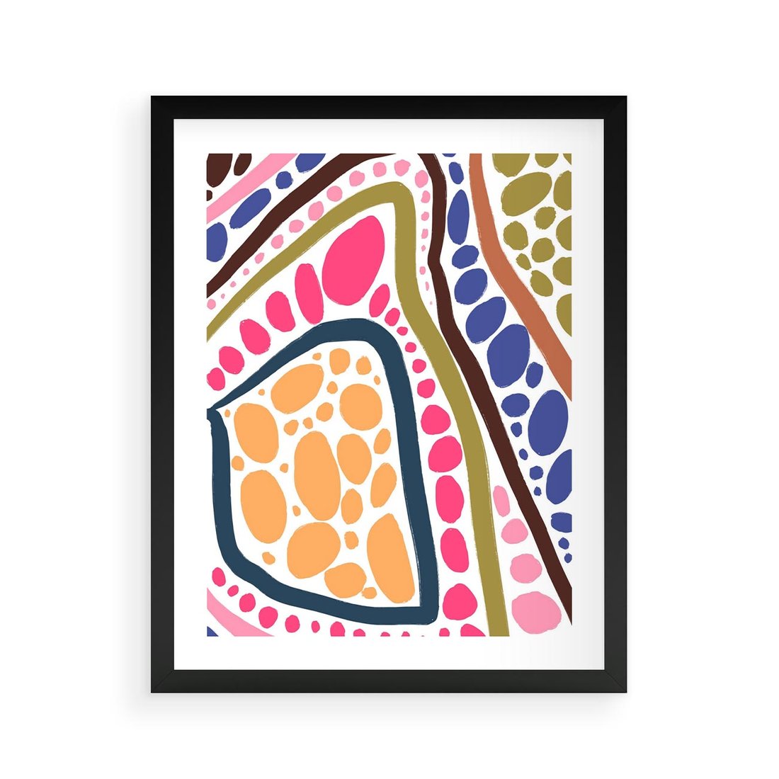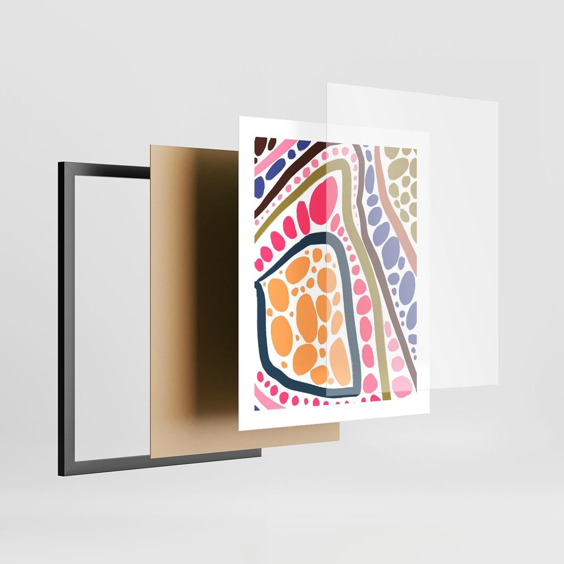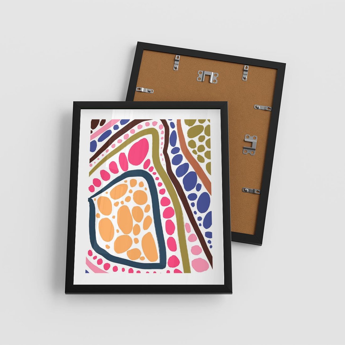 Ten nowoczesny plakat prezentuje kolorowe wzory w tęczowych, żywych kolorach, w formie plam i cipek. To energetyczne i pełne życia połączenie wprowadza do Twojej przestrzeni radość i wyrazistość, tworząc jednocześnie interesujący akcent artystyczny.