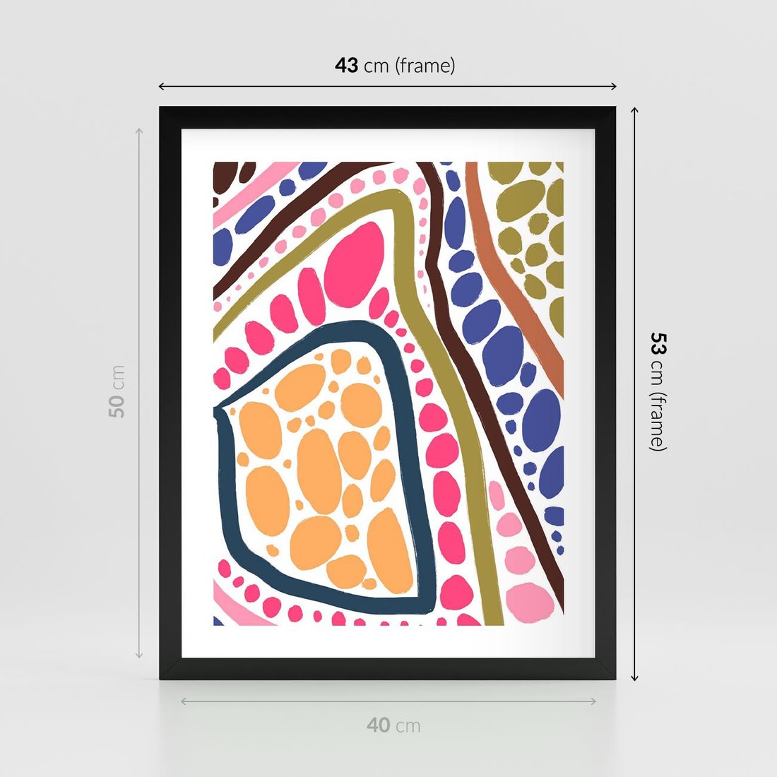Plakat w ramie 40x50 - Migocące Tęczowe Widzenia - kolorowe wzory, tęczowe żywe kolory - rama czarna