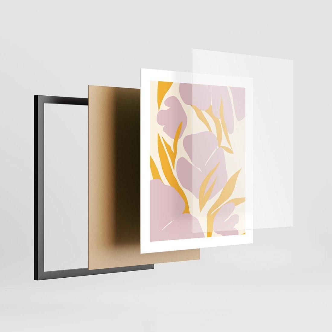 Plakat w ramie 40x50 - Migocące Wibracje - abstrakcyjne kwiaty, pastelowe kolory - rama czarna