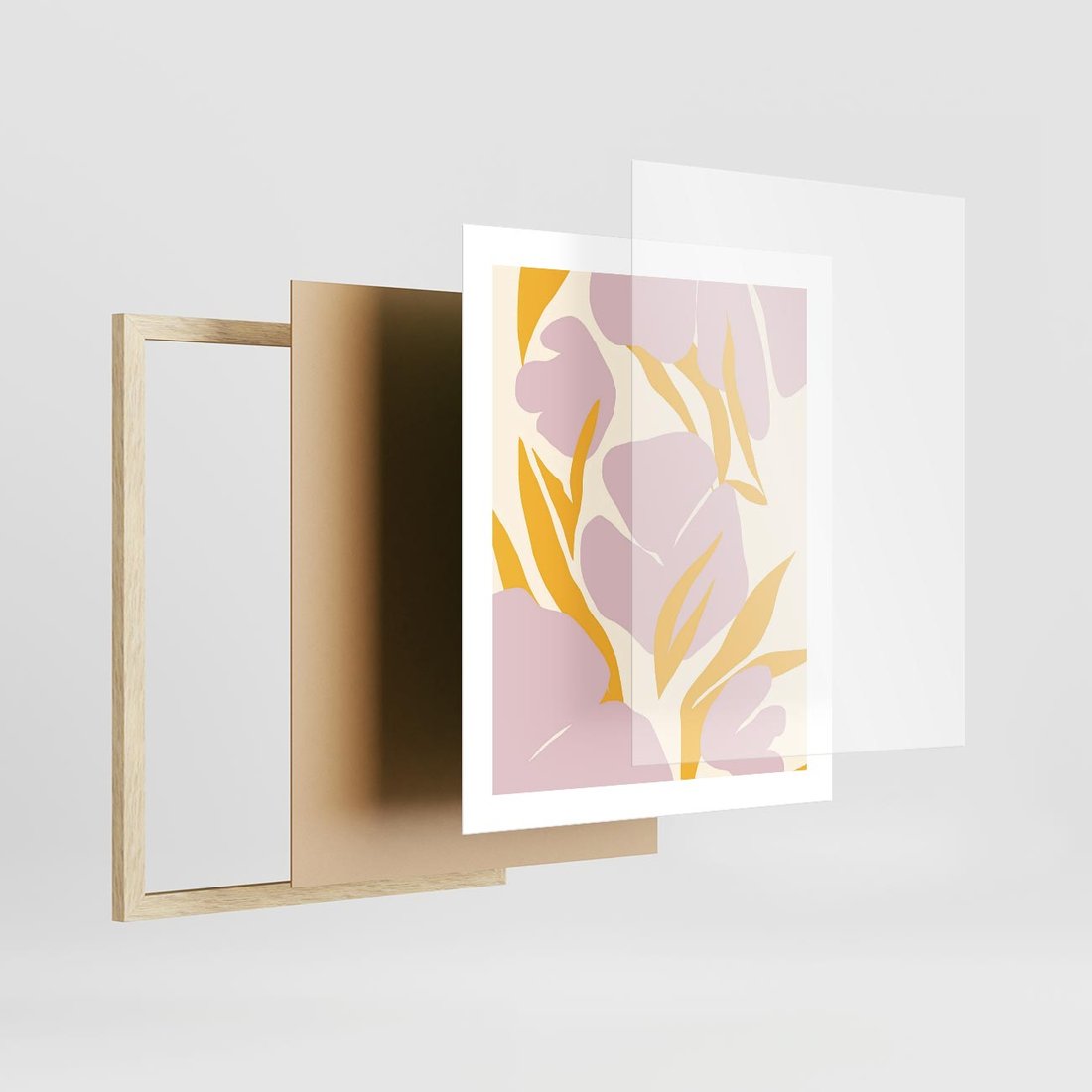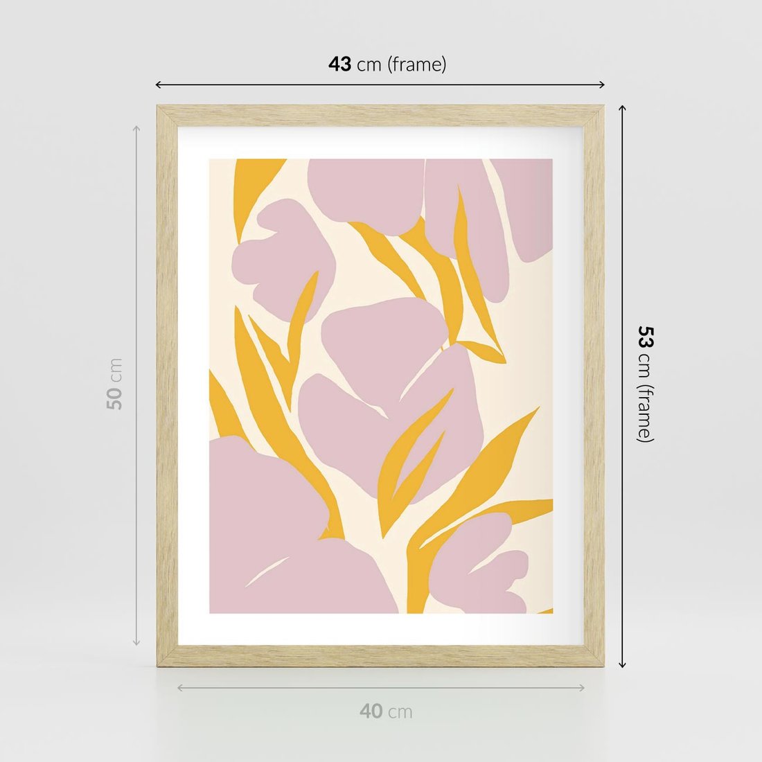 Plakat w ramie 40x50 - Migocące Wibracje - abstrakcyjne kwiaty, pastelowe kolory - rama drewno