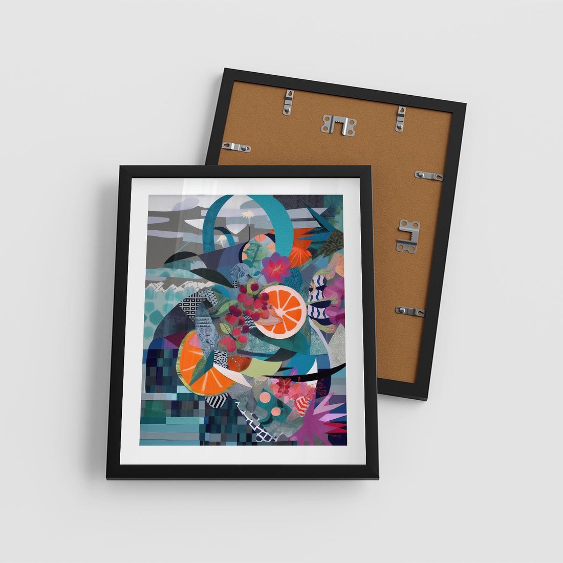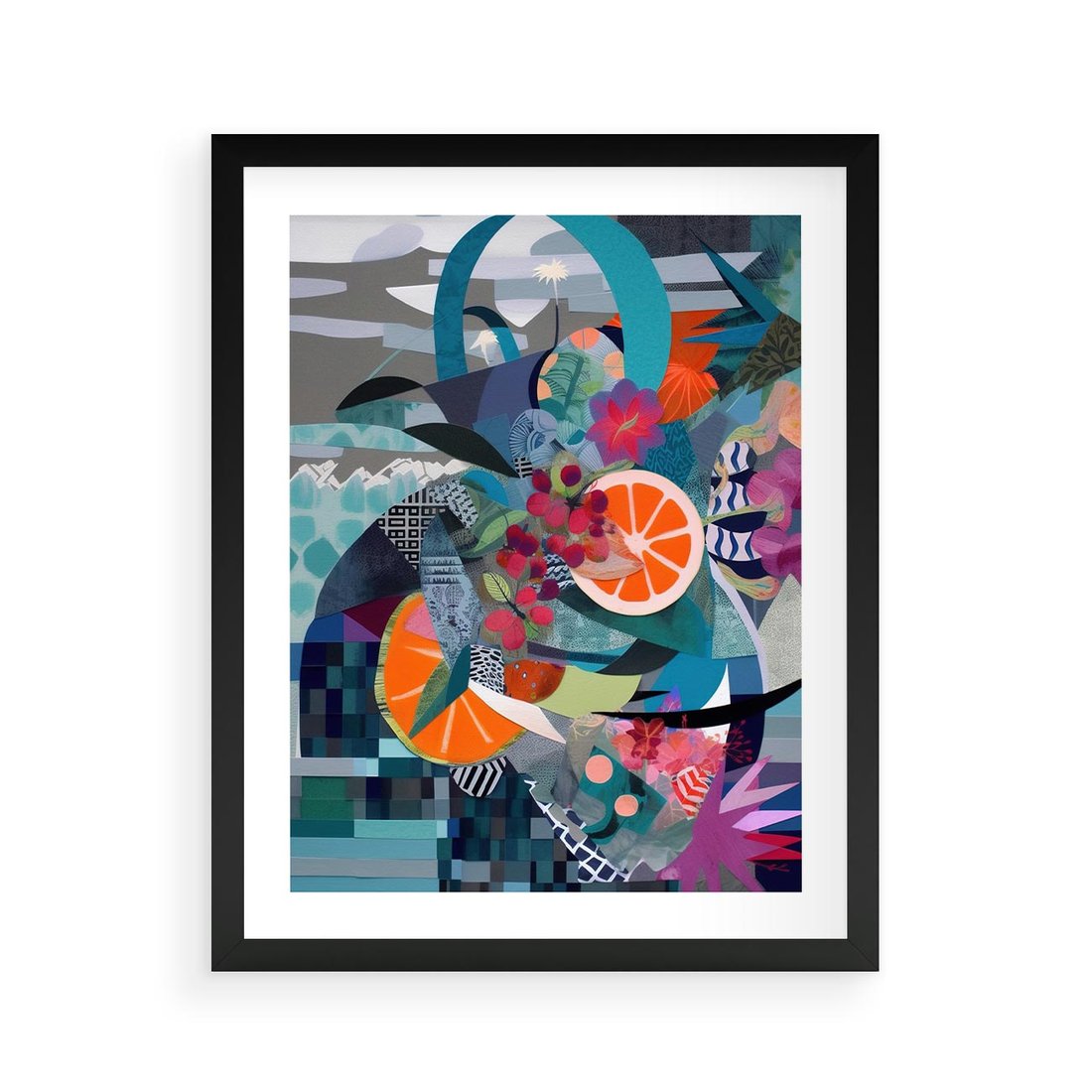 Plakat w ramie 40x50 - Migocące Widoki Harmonii - abstrakcyjny obraz, jak picasso - rama czarna