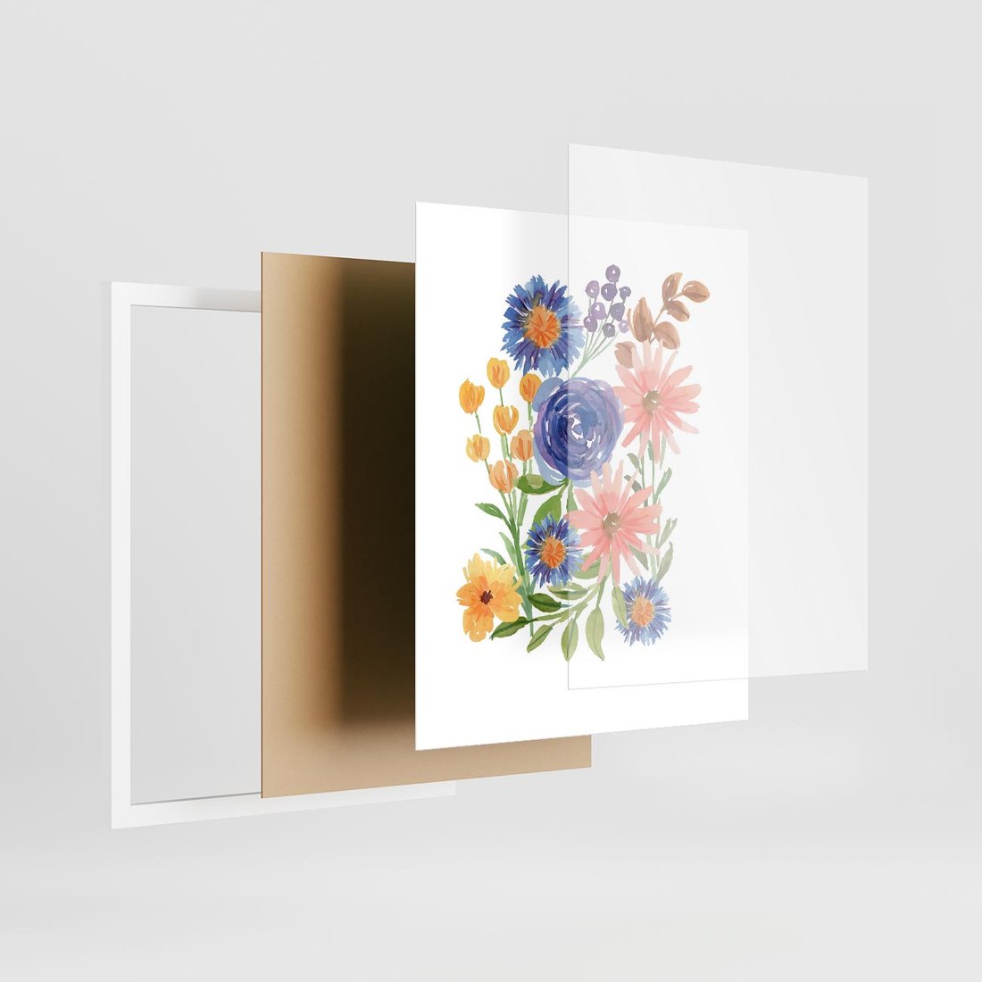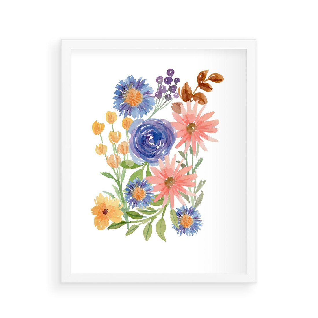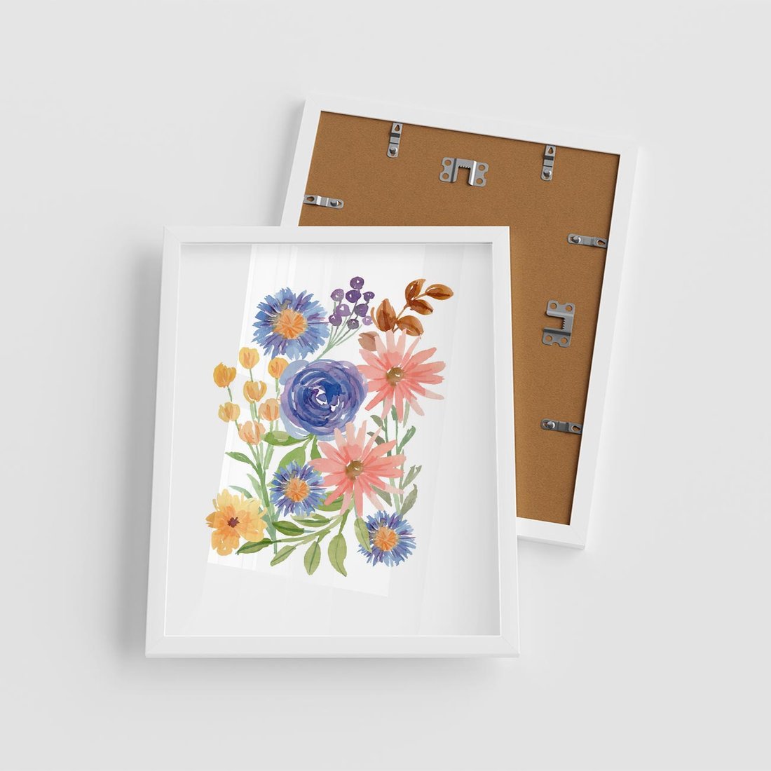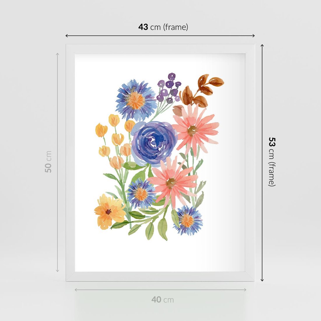 Plakat w ramie 40x50 - Migocące Widoki Kwiatów - akwarelowe polne kwiaty, minimalistyczny plakat - rama biała