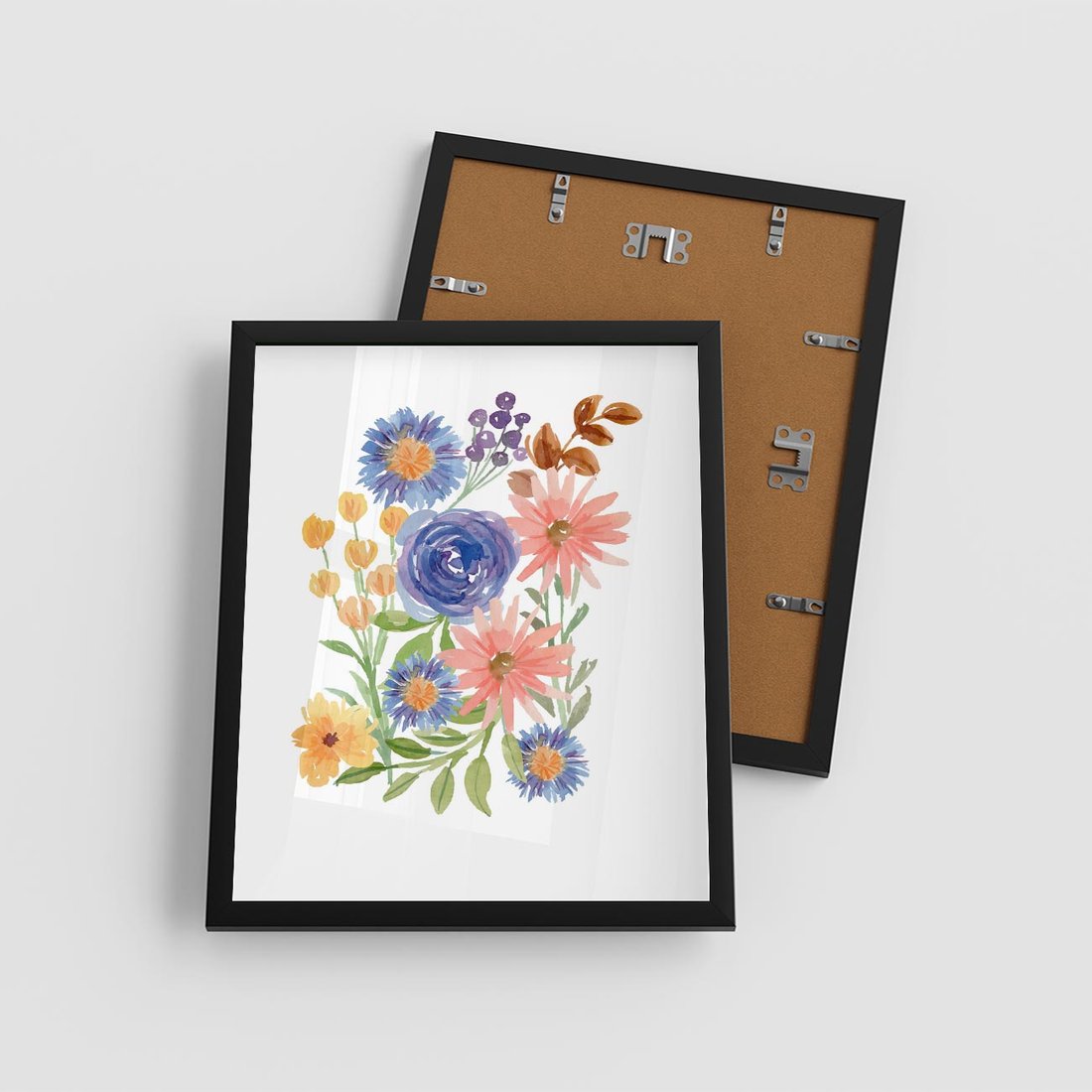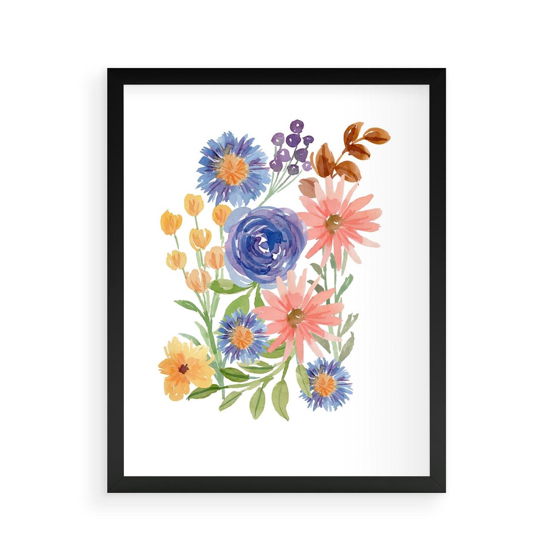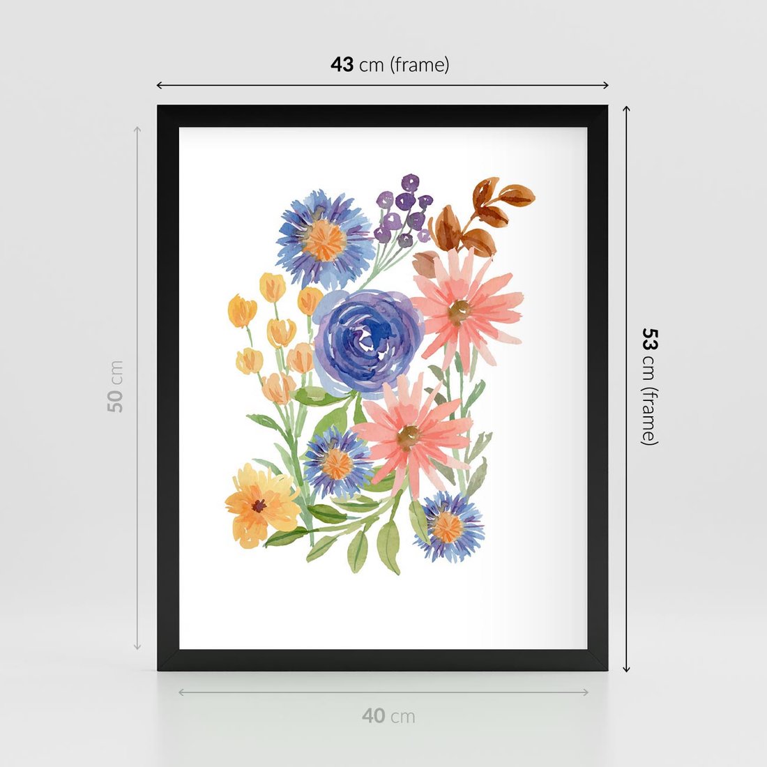Plakat w ramie 40x50 - Migocące Widoki Kwiatów - akwarelowe polne kwiaty, minimalistyczny plakat - rama czarna