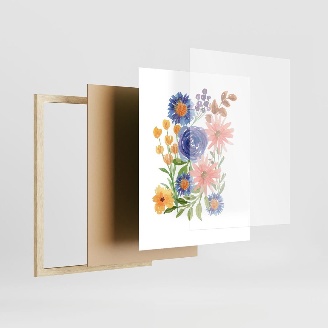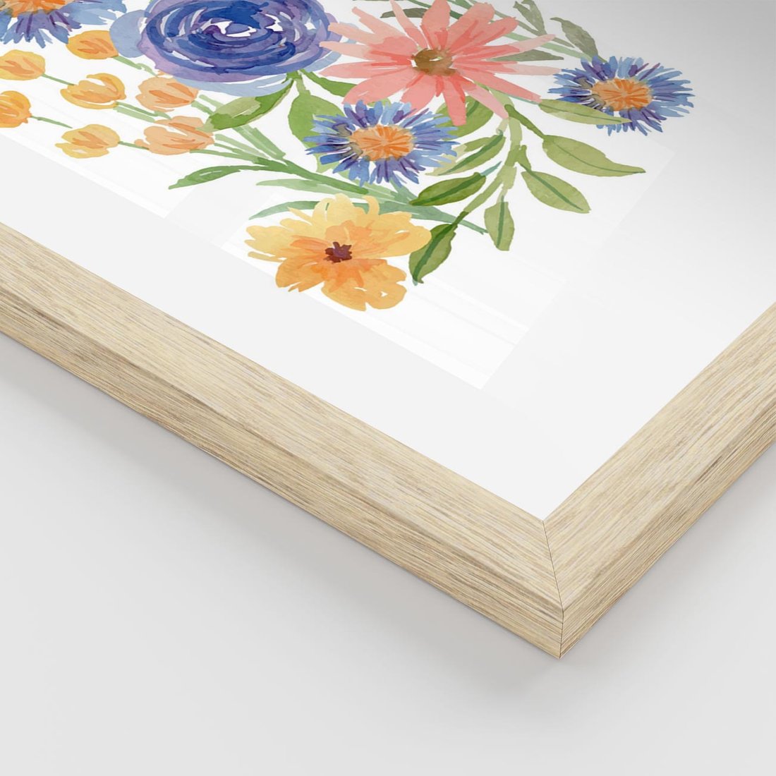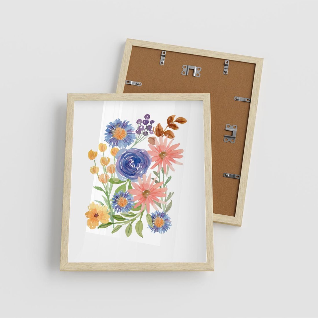 Plakat w ramie 40x50 - Migocące Widoki Kwiatów - akwarelowe polne kwiaty, minimalistyczny plakat - rama drewno