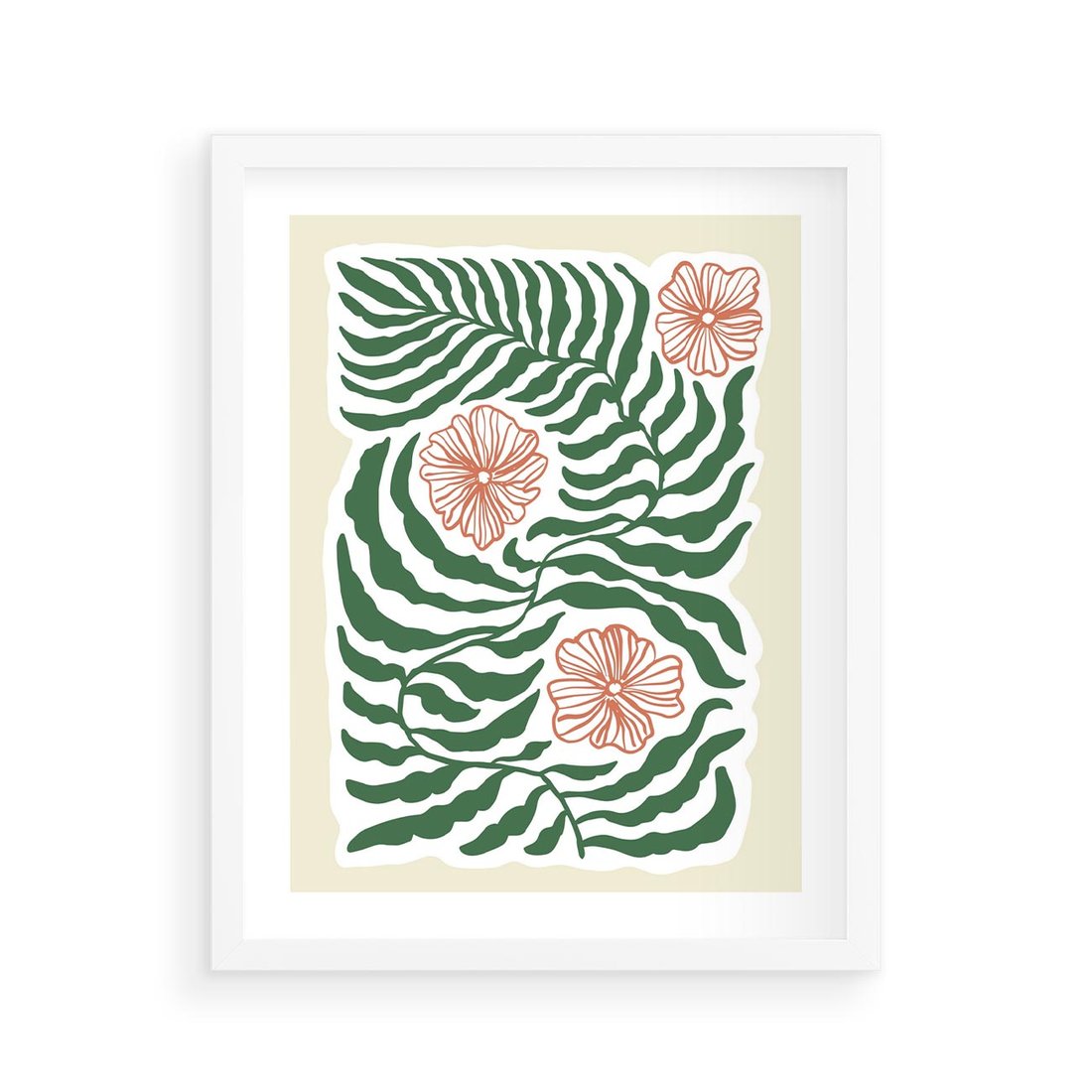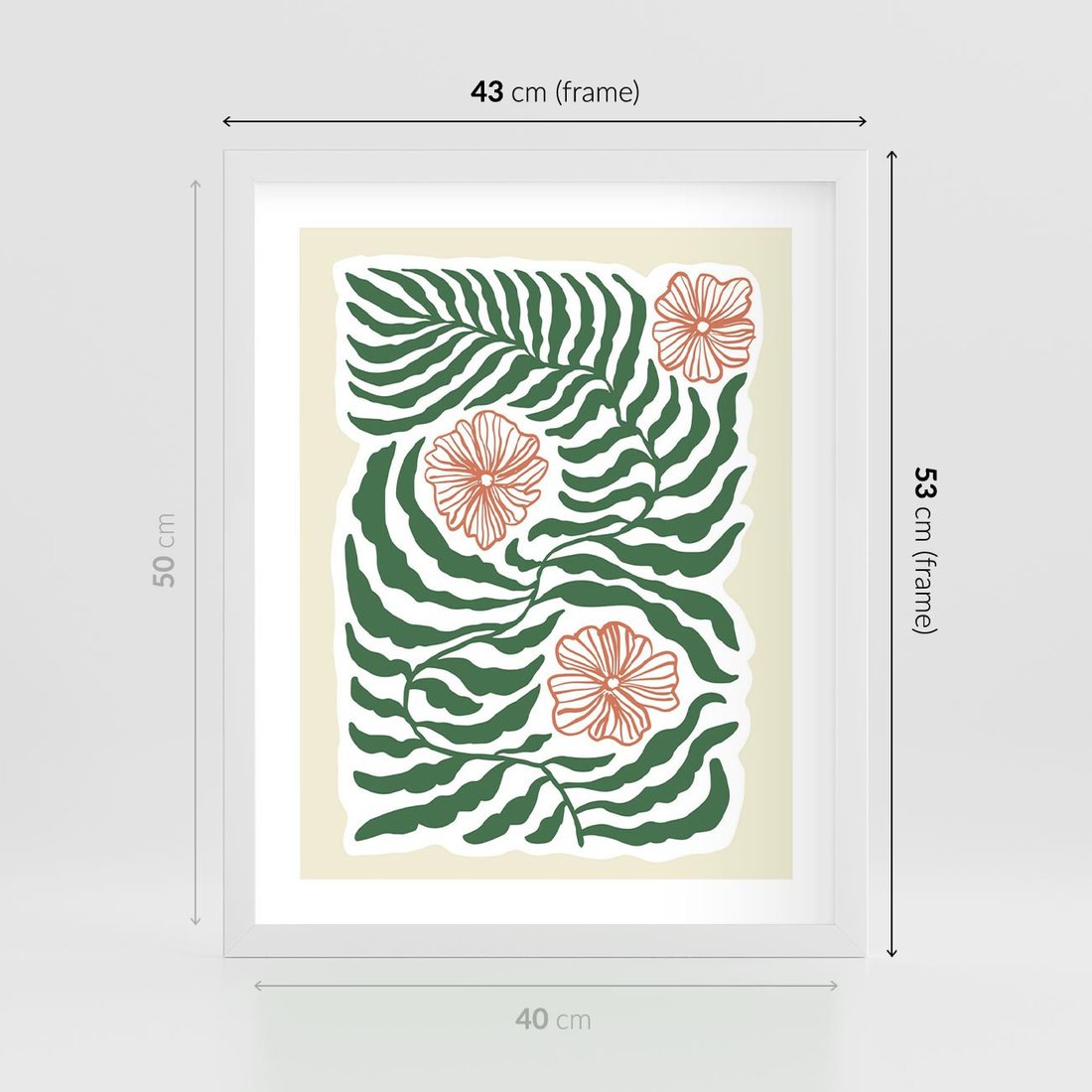 Plakat w ramie 40x50 - Migocące Wzory - abstrakcyjna kompozycja, paprocie - rama biała