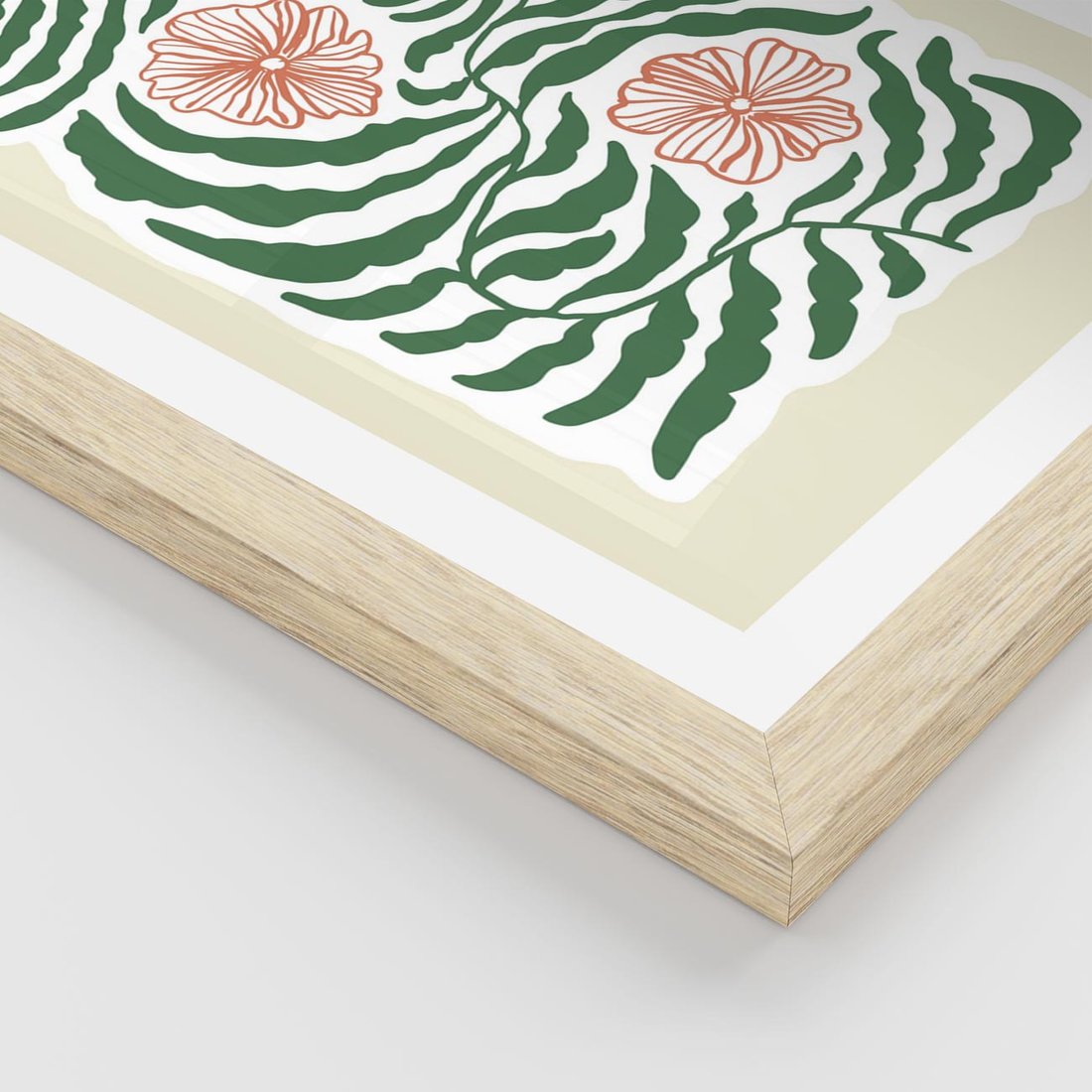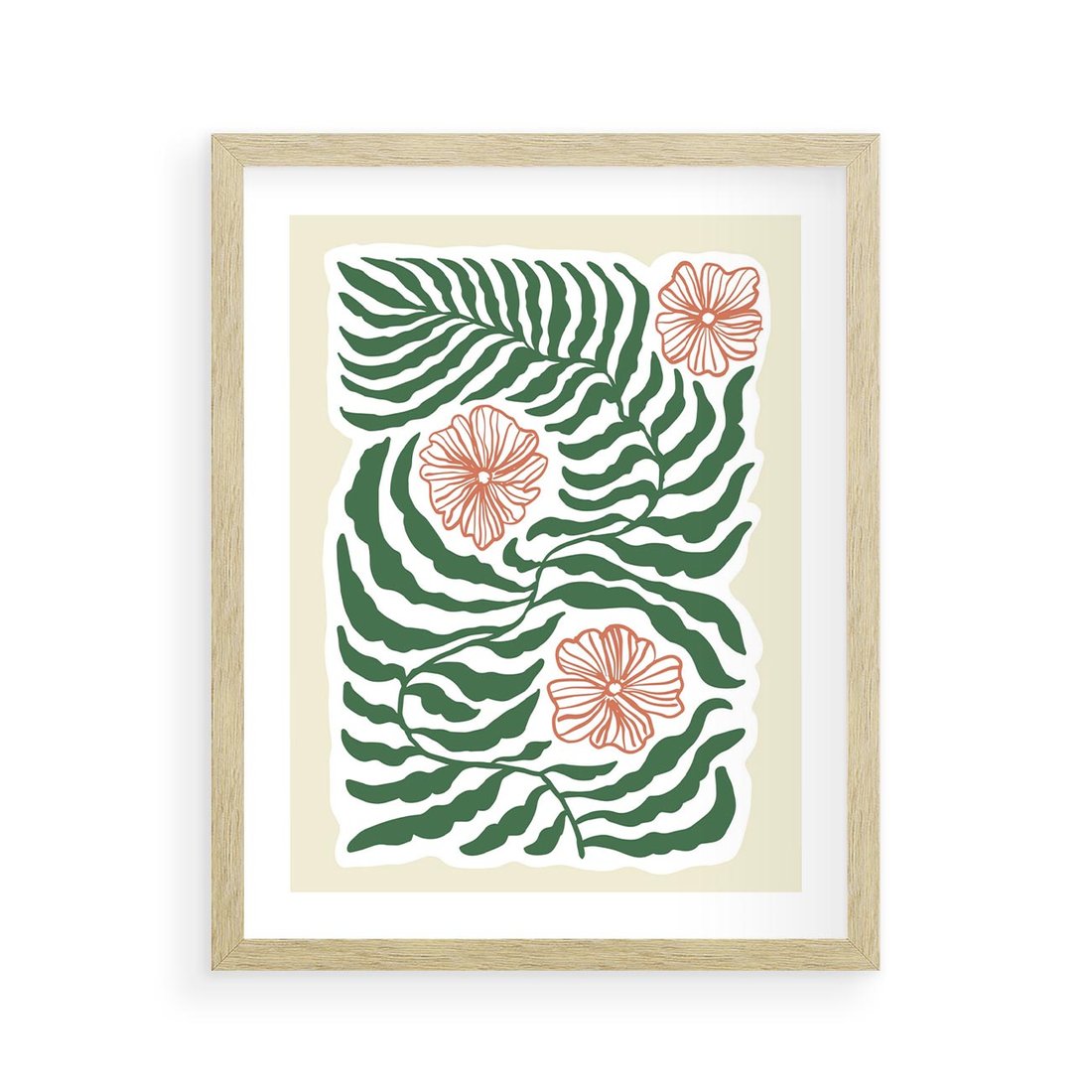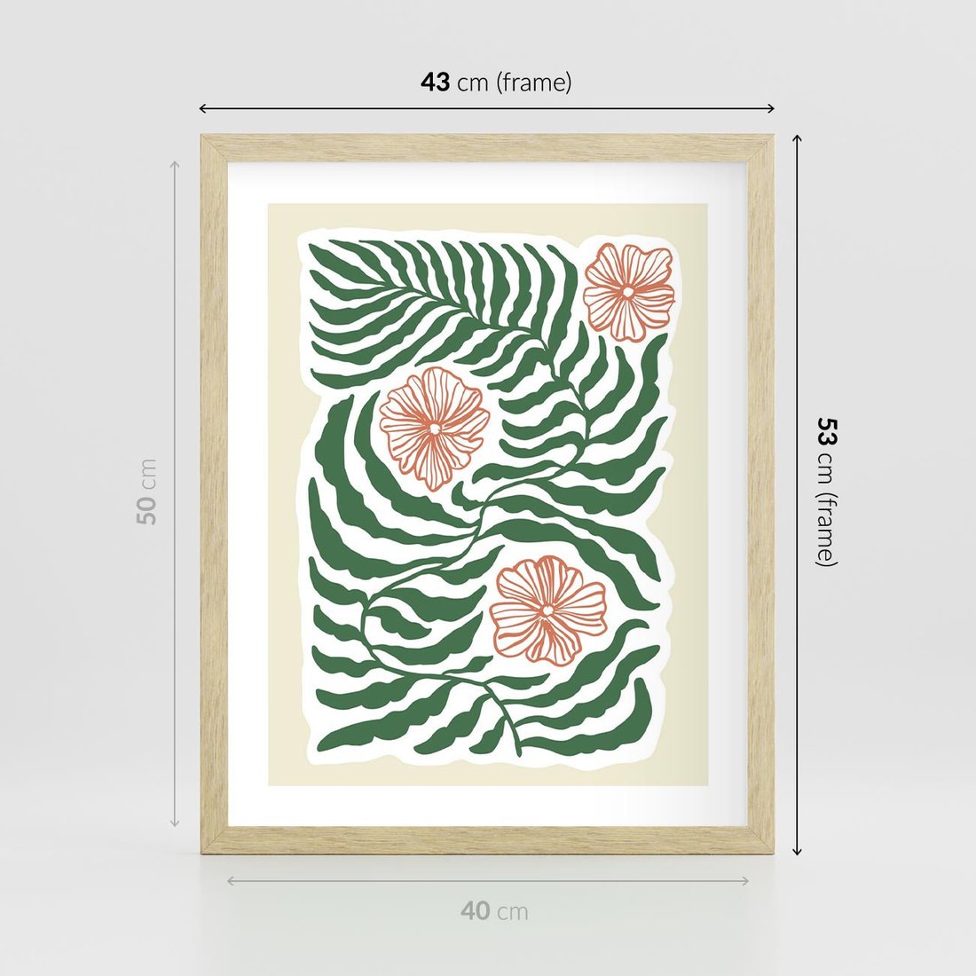 Plakat w ramie 40x50 - Migocące Wzory - abstrakcyjna kompozycja, paprocie - rama drewno