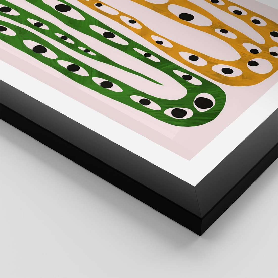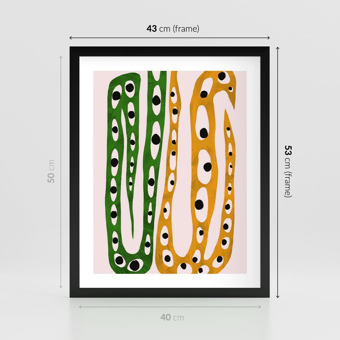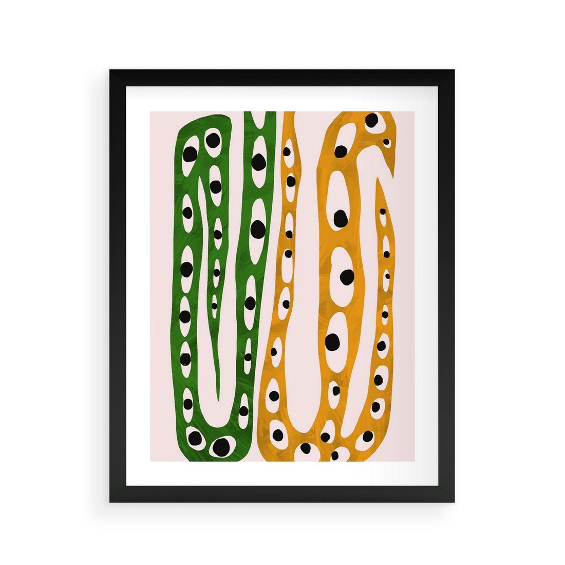 Nasz abstrakcyjny obraz przeniesie Cię w tajemniczy świat dziwnych kształtów przypominających zwinne węże. Soczyste żółte i zielone barwy ożywiają kompozycję, tworząc dynamiczny kontrast. To wyjątkowy akcent artystyczny, który dodaje charakteru i zaskoczenia każdej przestrzeni.
