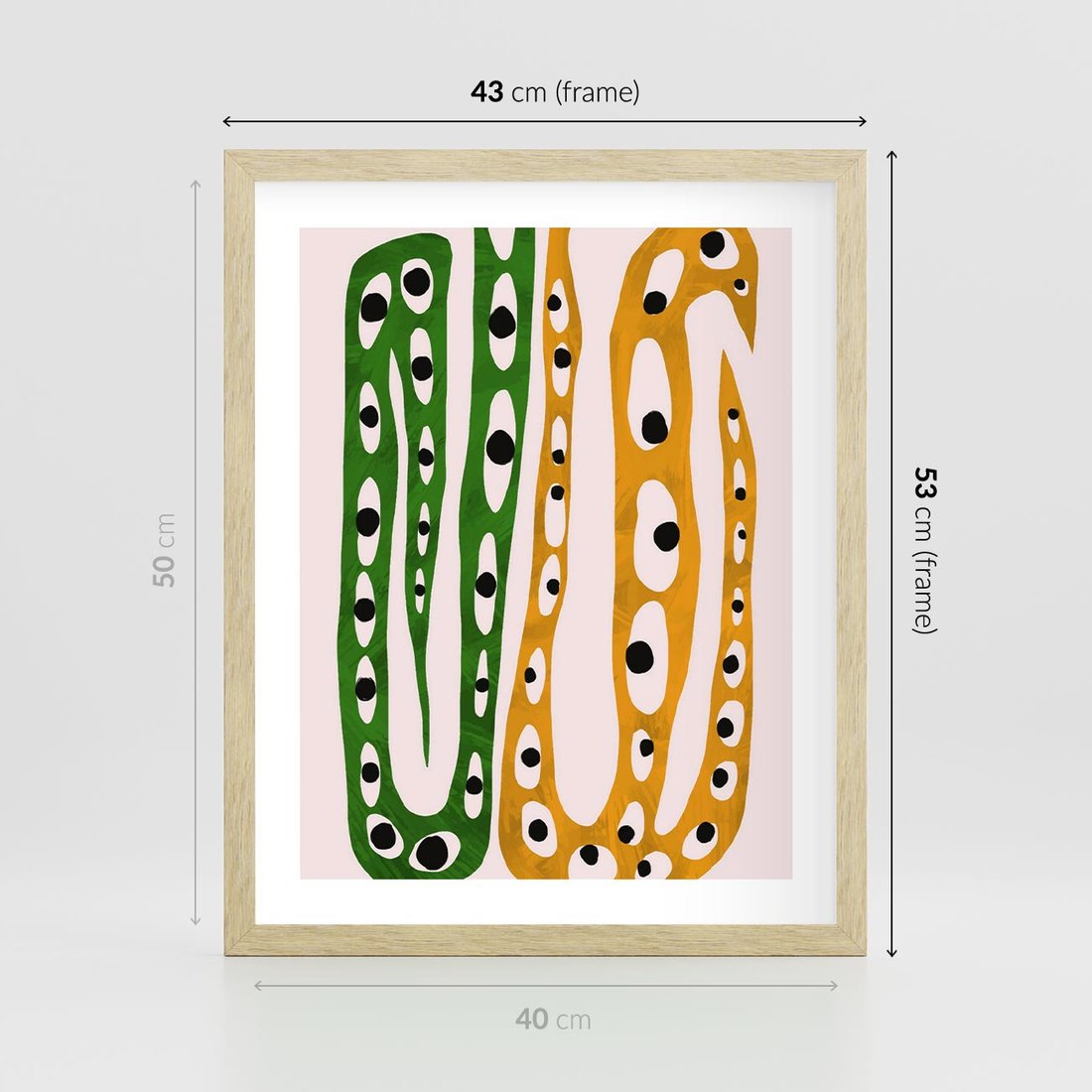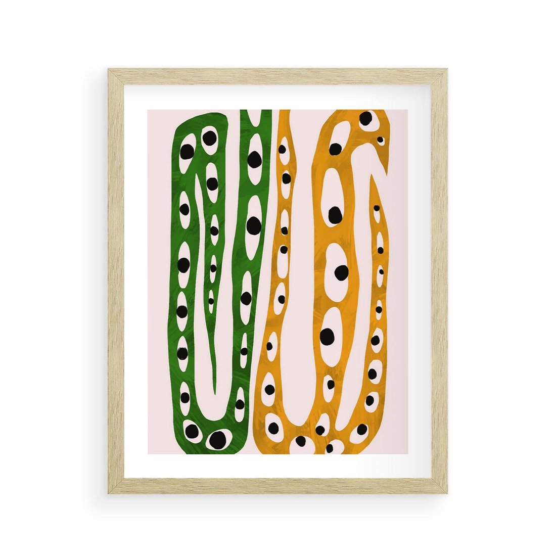 Nasz abstrakcyjny obraz przeniesie Cię w tajemniczy świat dziwnych kształtów przypominających zwinne węże. Soczyste żółte i zielone barwy ożywiają kompozycję, tworząc dynamiczny kontrast. To wyjątkowy akcent artystyczny, który dodaje charakteru i zaskoczenia każdej przestrzeni.