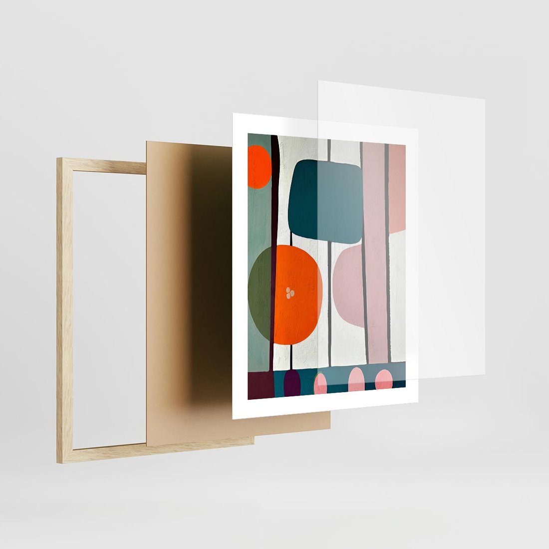 Plakat w ramie 40x50 - Migotliwa Aura Serca - abstrakcyjny obraz olejny, dziwne formy - rama drewno