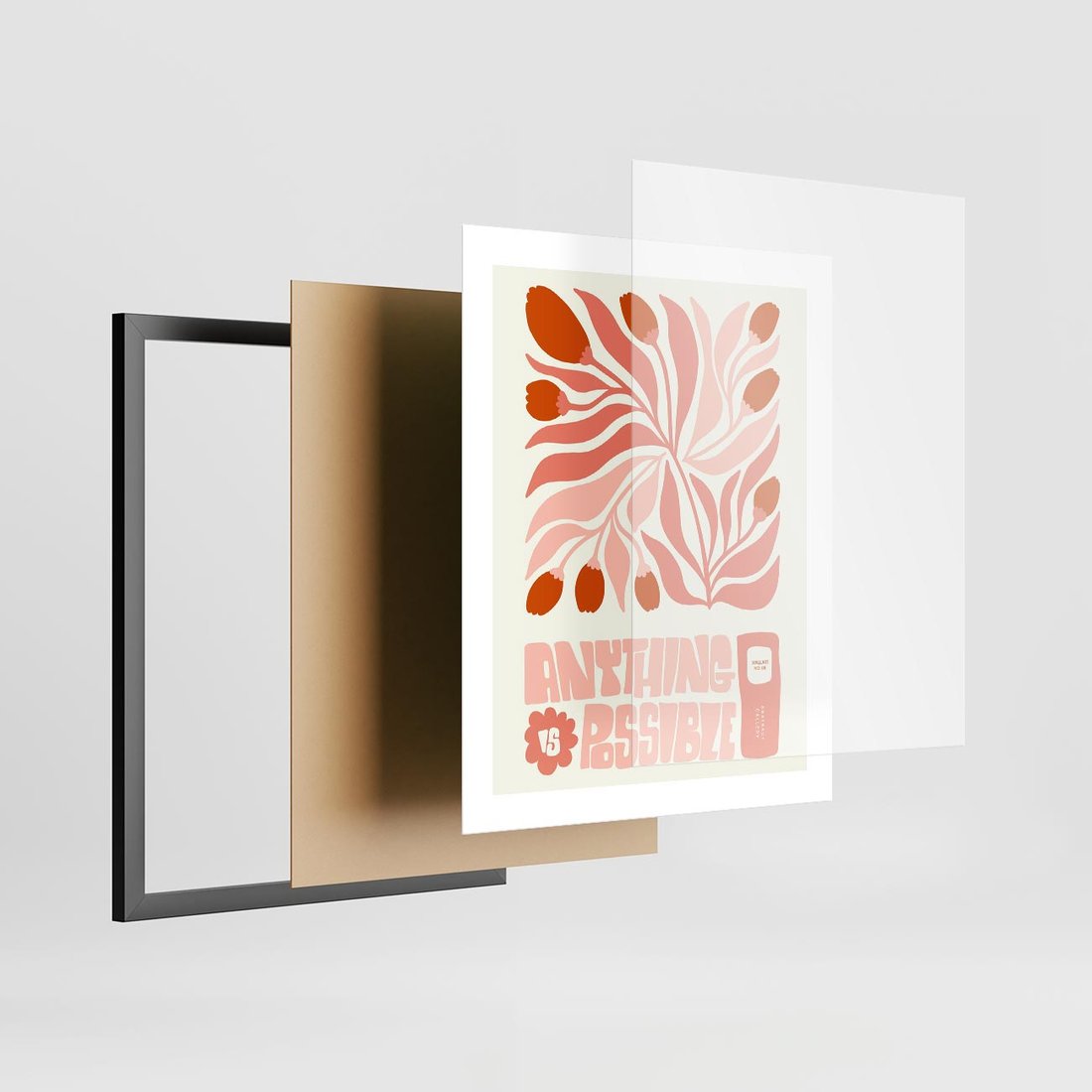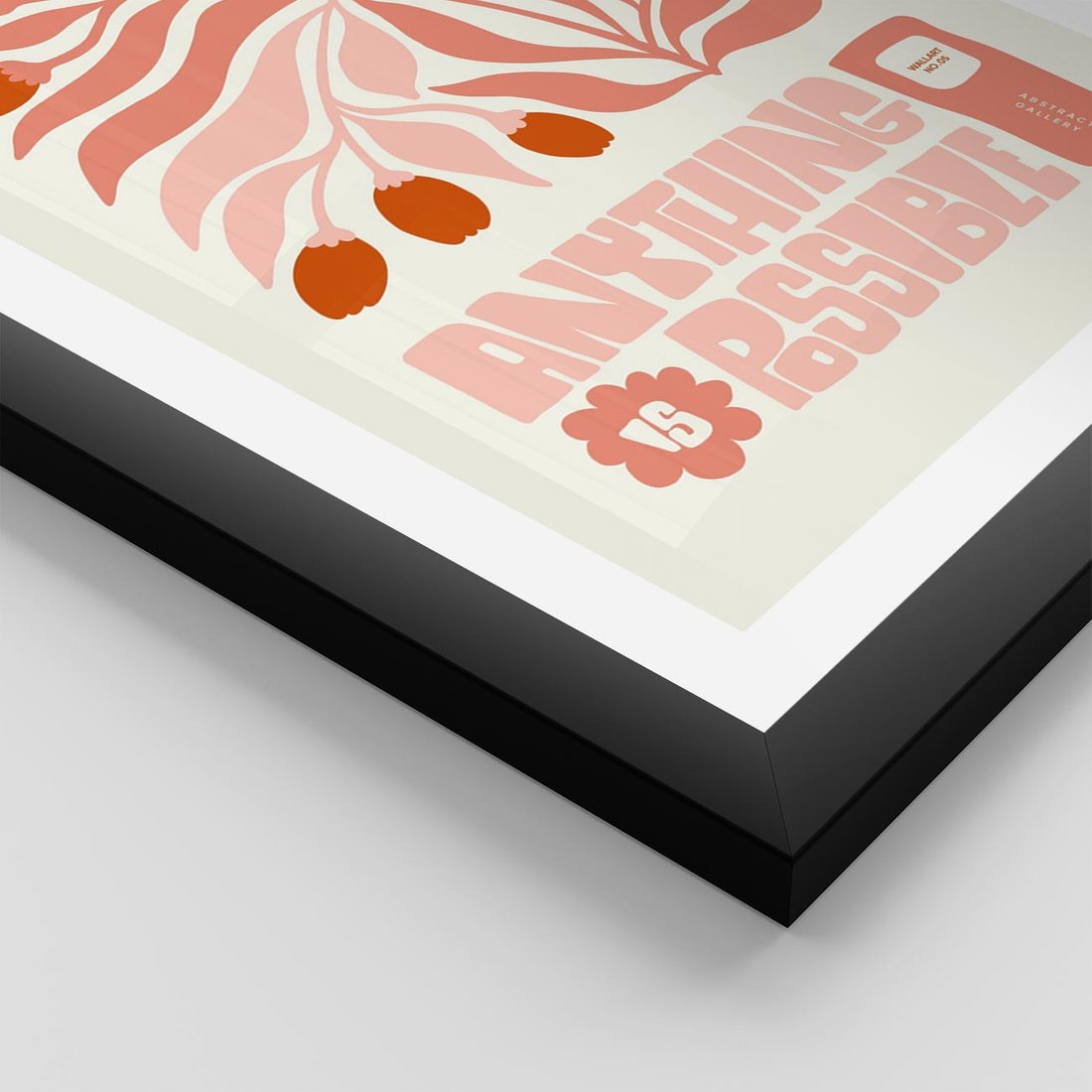 Plakat w ramie 40x50 - Migotliwa Euforia - kompozycja w łososiowym kolorze, kwiaty - rama czarna