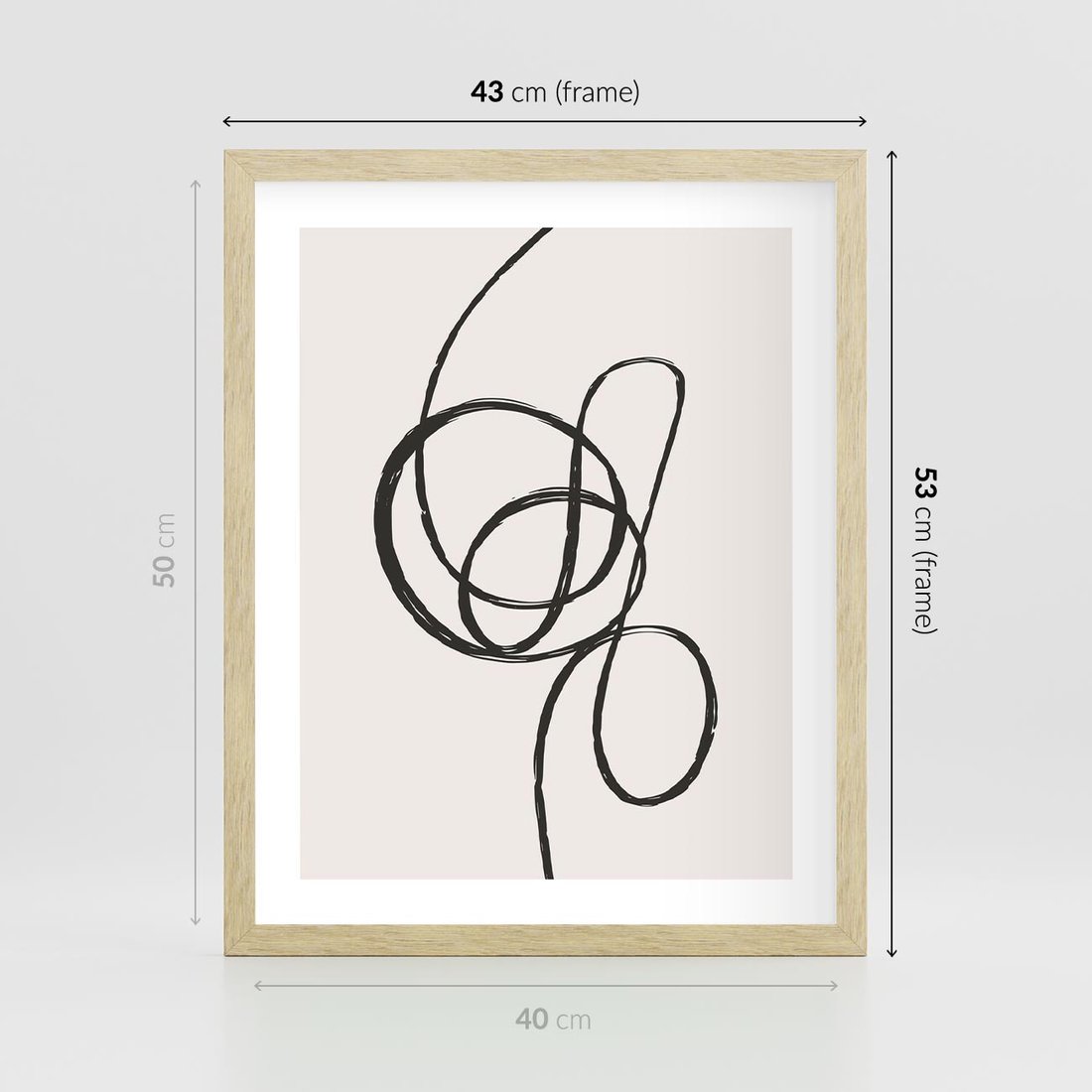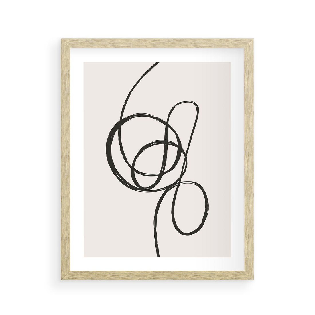 Plakat w ramie 40x50 - Migotliwa Kreatywność - abstrakcyjne szkicowane linie, minimalizm - rama drewno