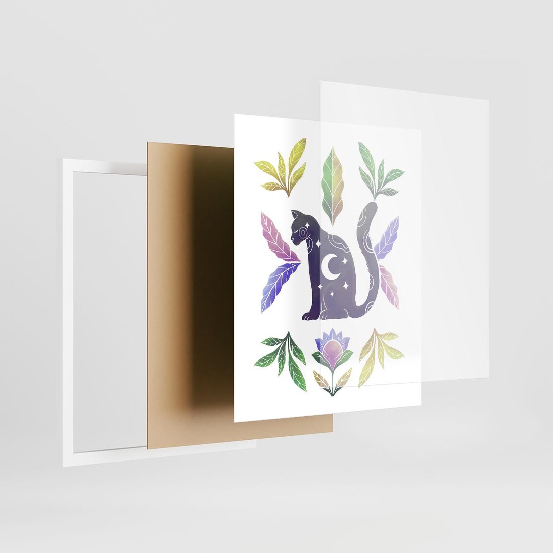Ożyw swoją przestrzeń boho plakatem z kolorowym kotem. Tęczowe kolory tworzą magiczną atmosferę, dodając wyjątkowej energii i wyrazistości do wnętrza.