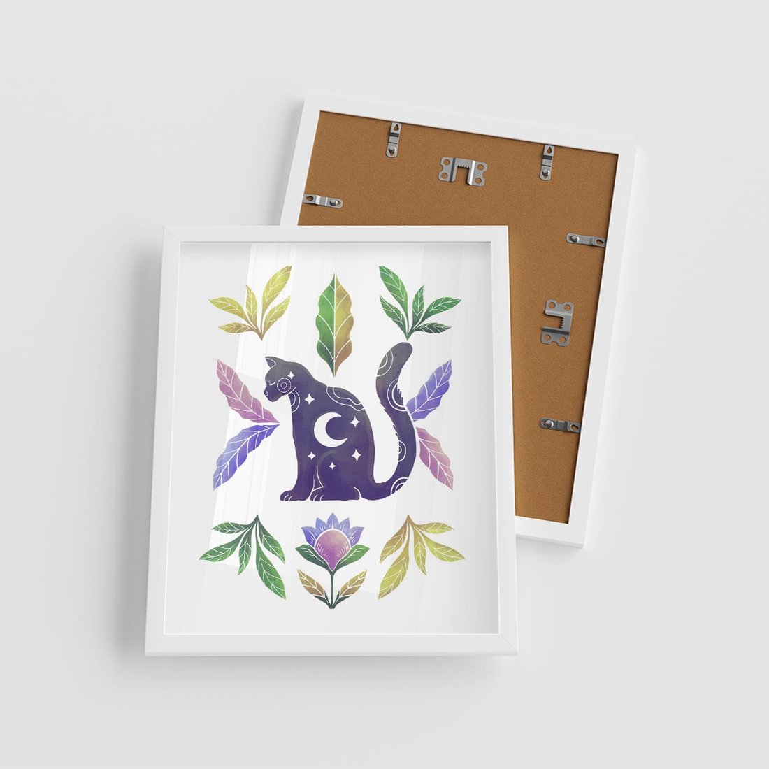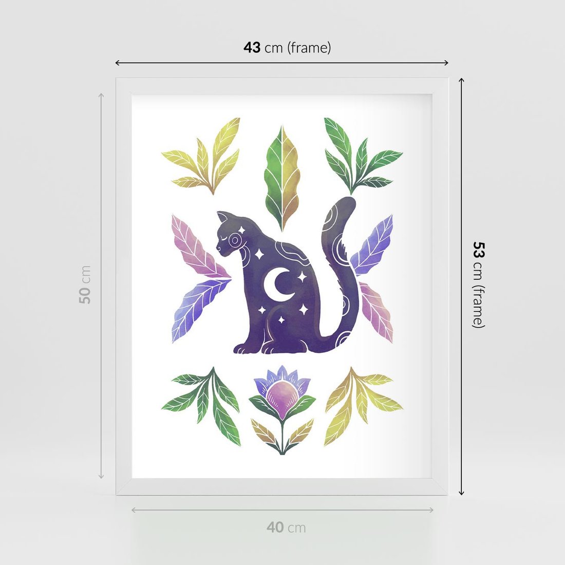 Plakat w ramie 40x50 - Migotliwa Przestrzeń - boho kot, plakat - rama biała