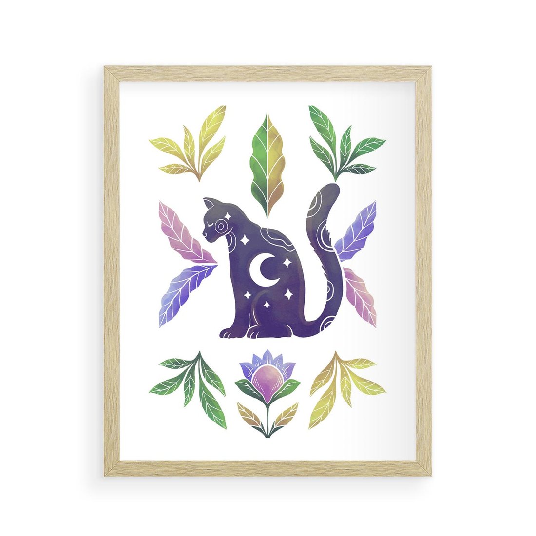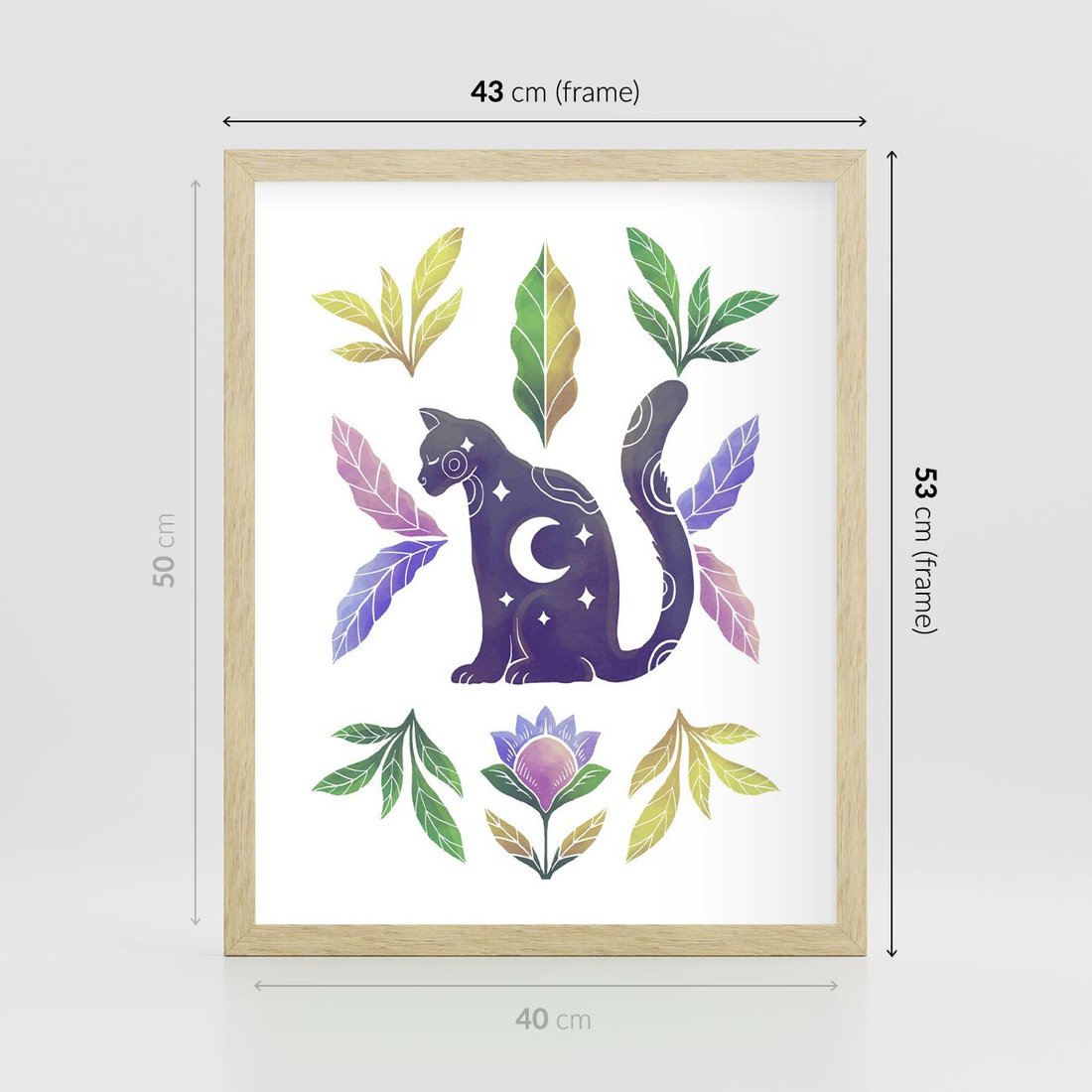 Plakat w ramie 40x50 - Migotliwa Przestrzeń - boho kot, plakat - rama drewno