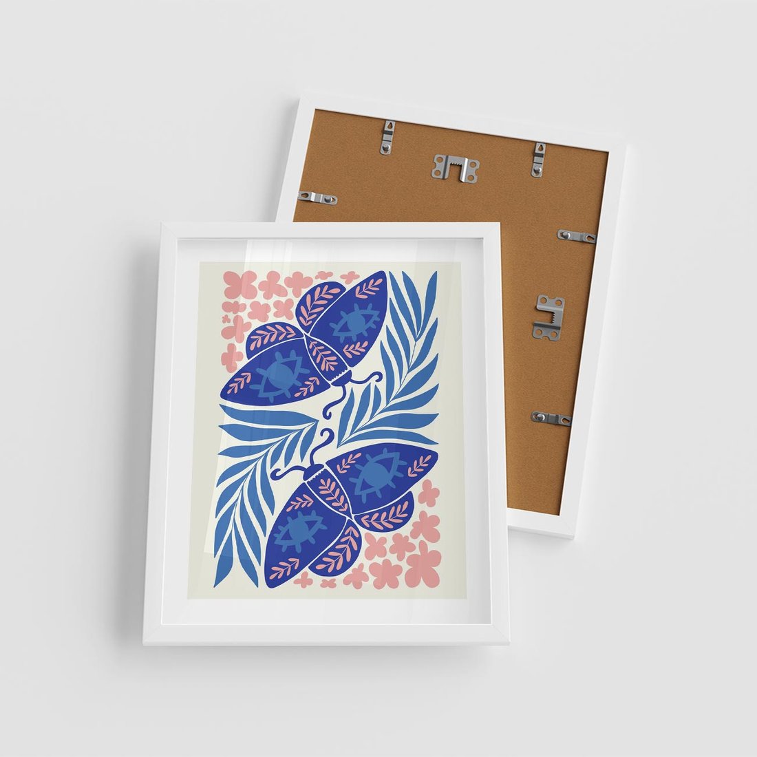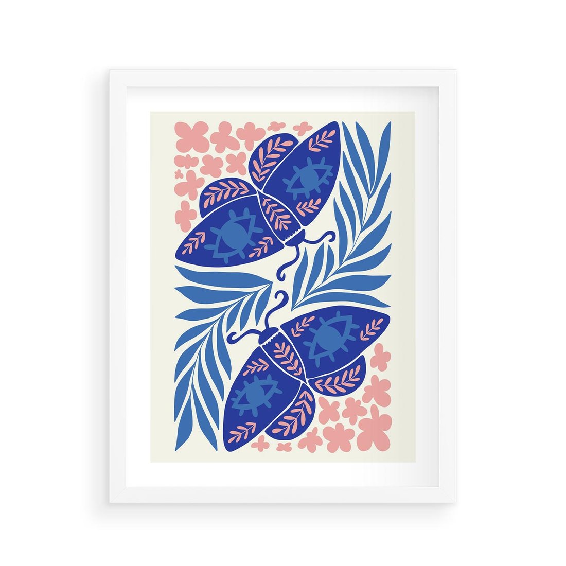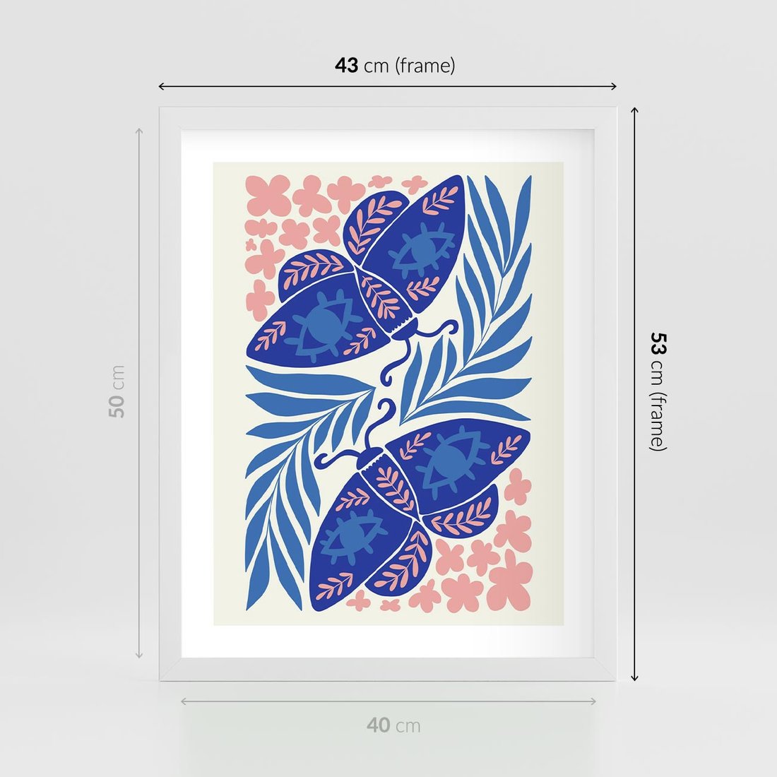 Plakat w ramie 40x50 - Migotliwa Rzeczywistość - ćmy, kwiaty - rama biała