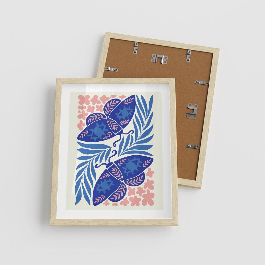 Plakat w ramie 40x50 - Migotliwa Rzeczywistość - ćmy, kwiaty - rama drewno