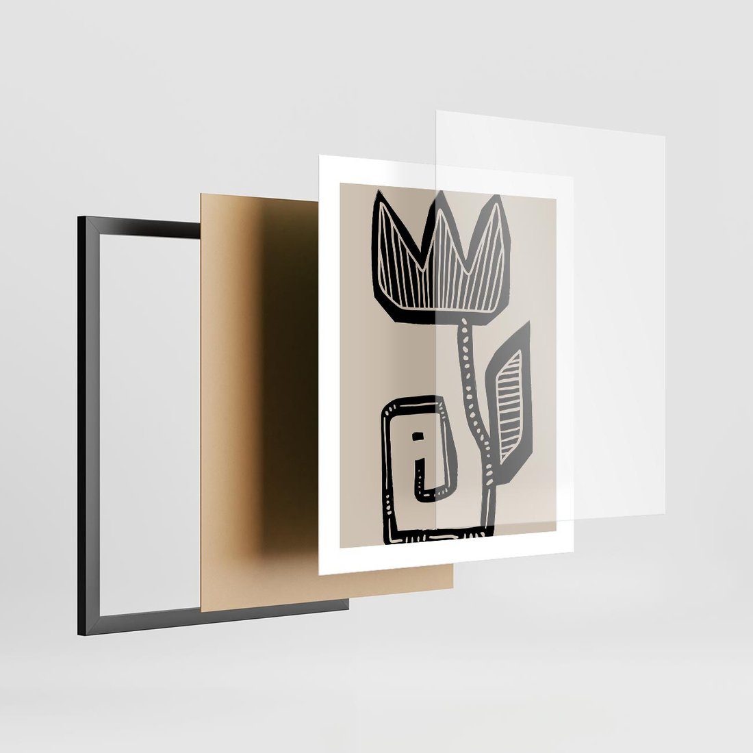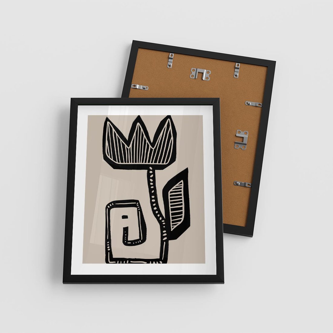 Ten boho nowoczesny plakat to minimalistyczna grafika czarnego kwiatu na spokojnym beżowym tle. To wyjątkowe połączenie stylów wprowadza do Twojej przestrzeni harmonię i wyrafinowanie, tworząc równocześnie interesujący akcent artystyczny.