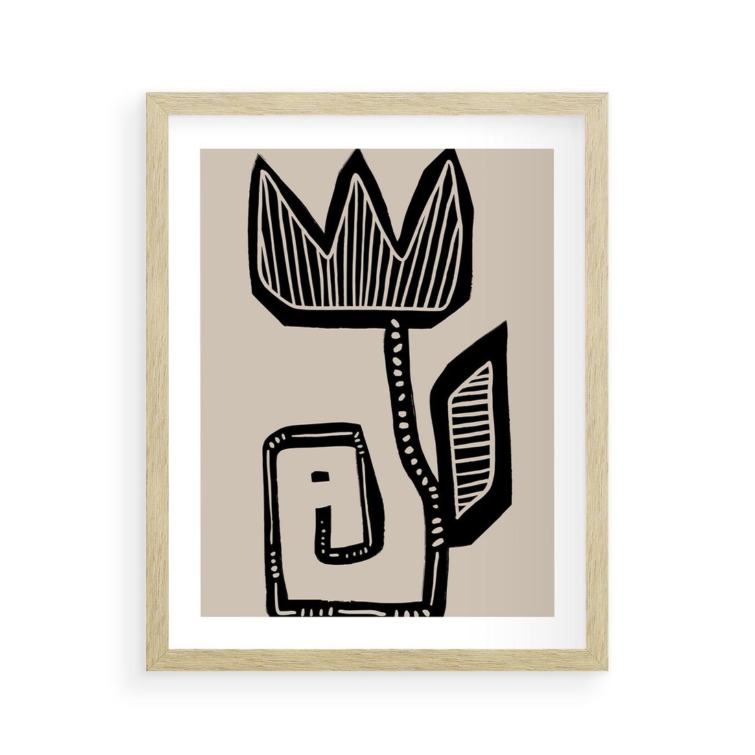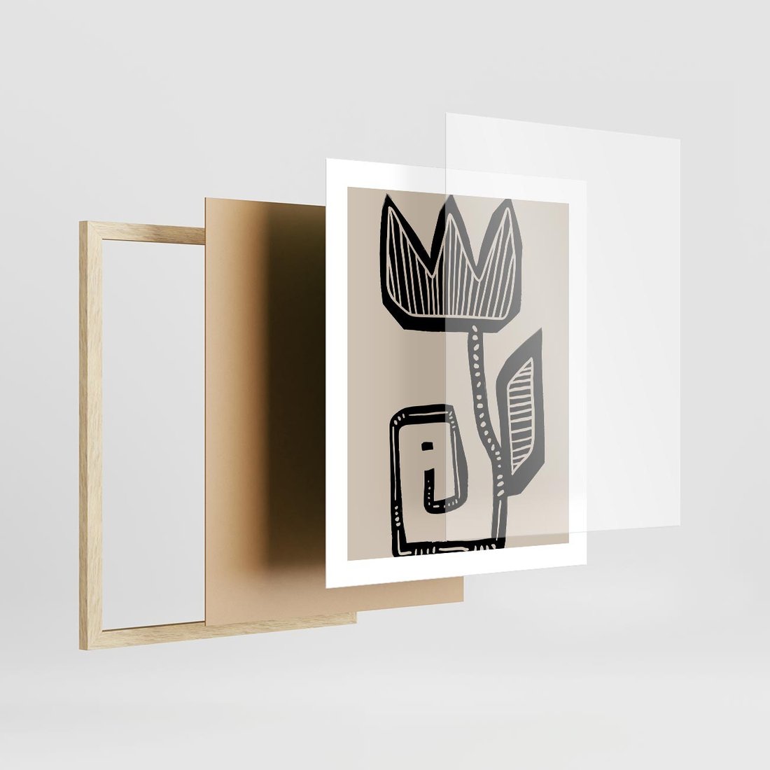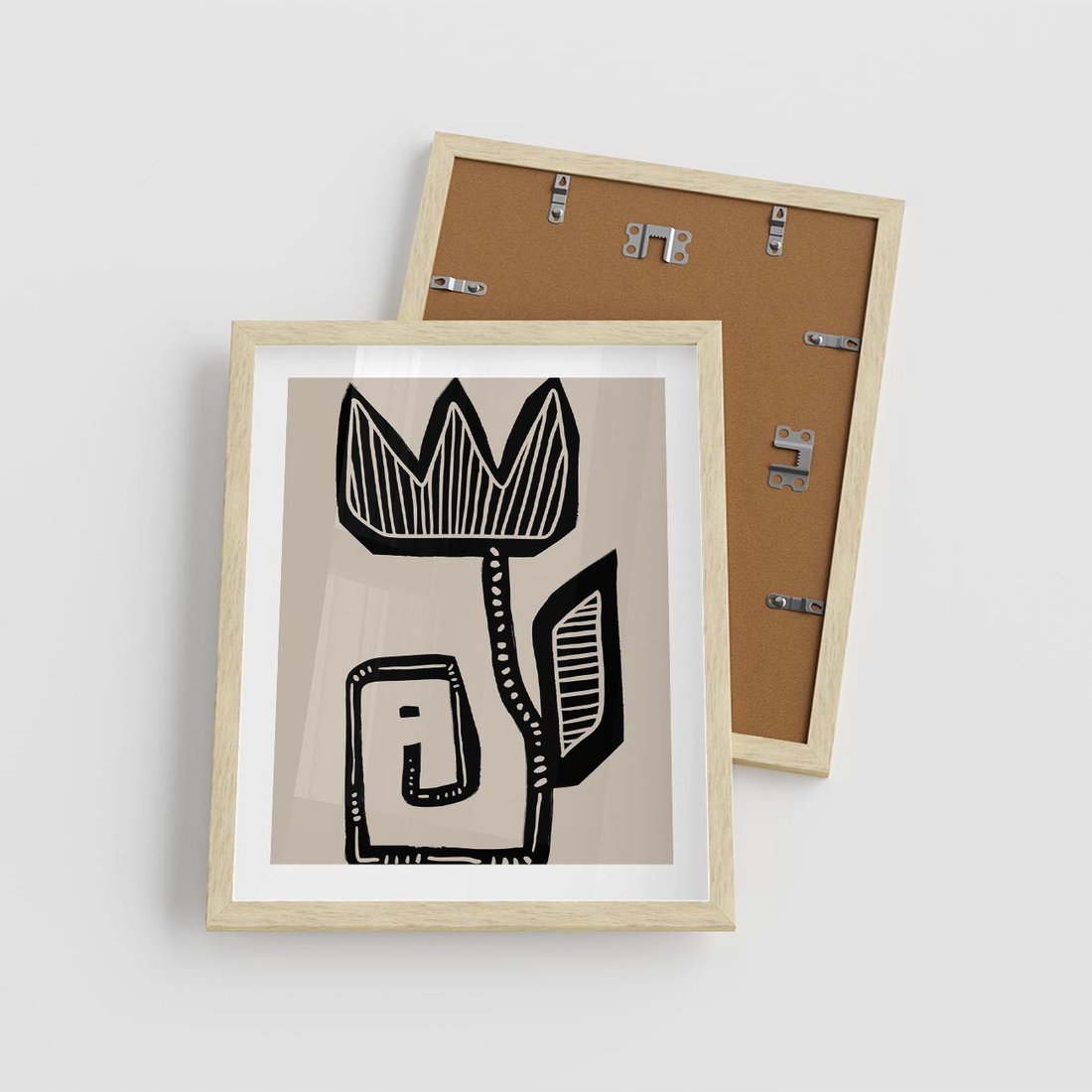 Ten boho nowoczesny plakat to minimalistyczna grafika czarnego kwiatu na spokojnym beżowym tle. To wyjątkowe połączenie stylów wprowadza do Twojej przestrzeni harmonię i wyrafinowanie, tworząc równocześnie interesujący akcent artystyczny.
