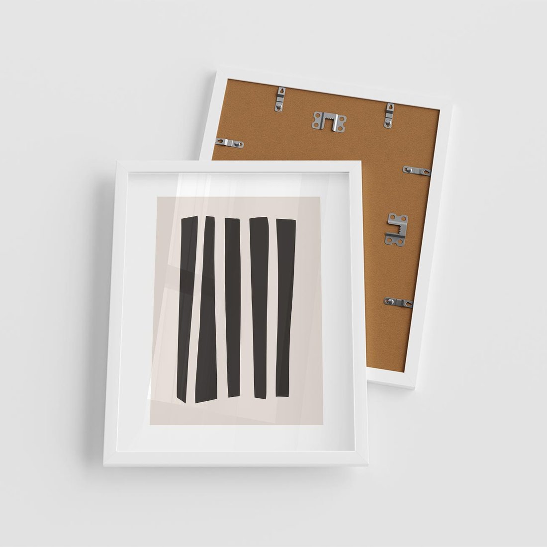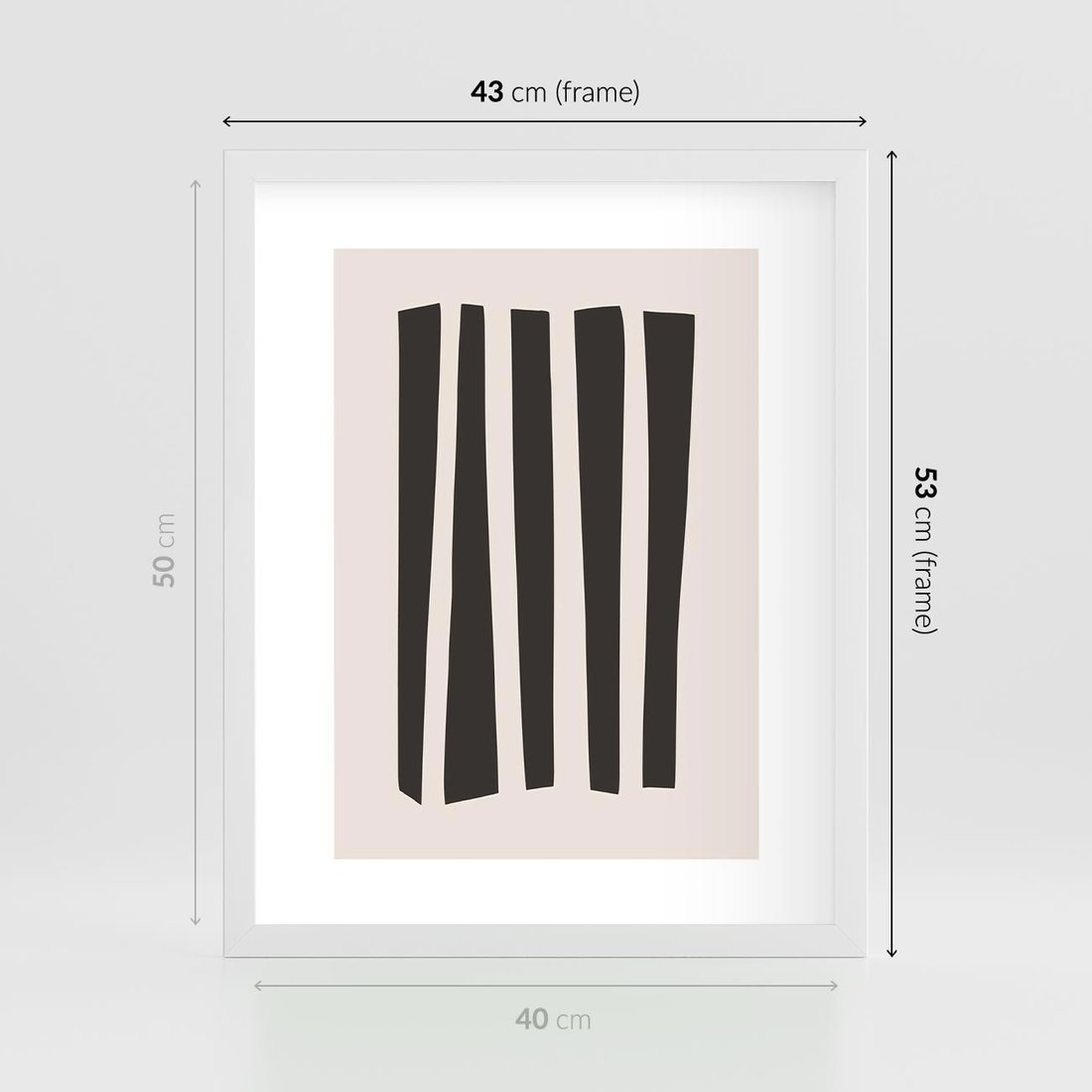 Plakat w ramie 40x50 - Migotliwa Transformacja Form - minimalizm, czarne pasy - rama biała