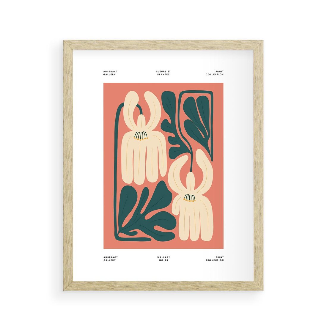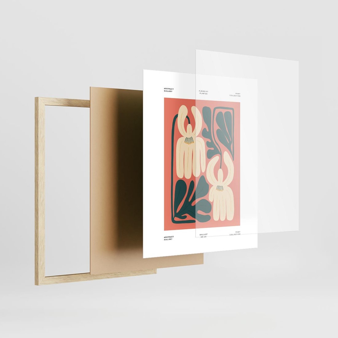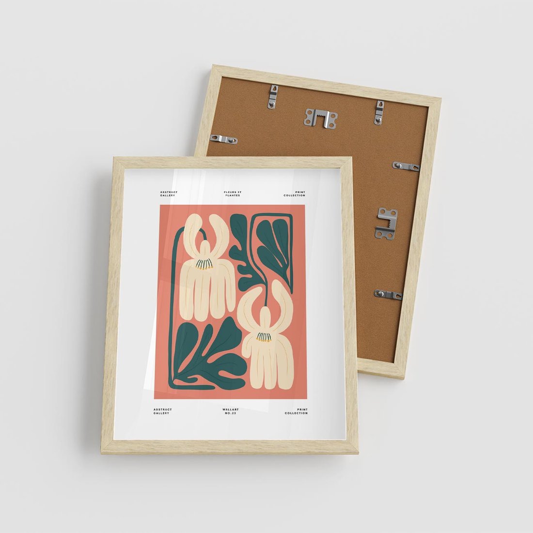 Ten plakat w nowoczesnej abstrakcji ukazuje delikatność kwiatów, wzbogaconą subtelna typografią. Kompozycja emanuje pięknem i wyrafinowanym stylem, tworząc wyjątkową przestrzeń estetycznych doznań.