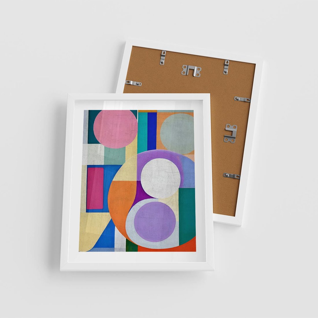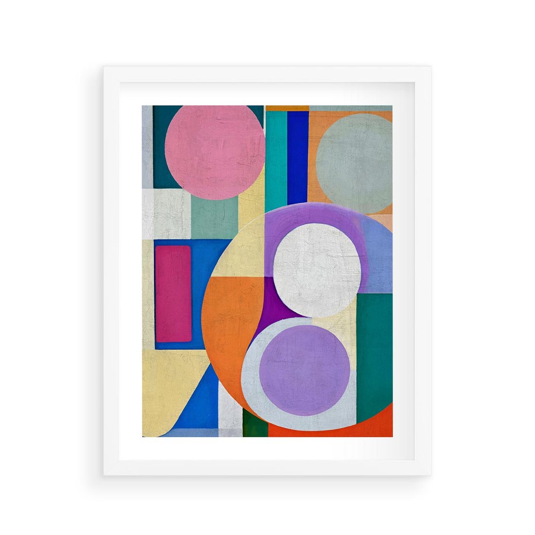 Plakat w ramie 40x50 - Migotliwe Impulsy Dźwięku - różne geometryczne formy, koła - rama biała