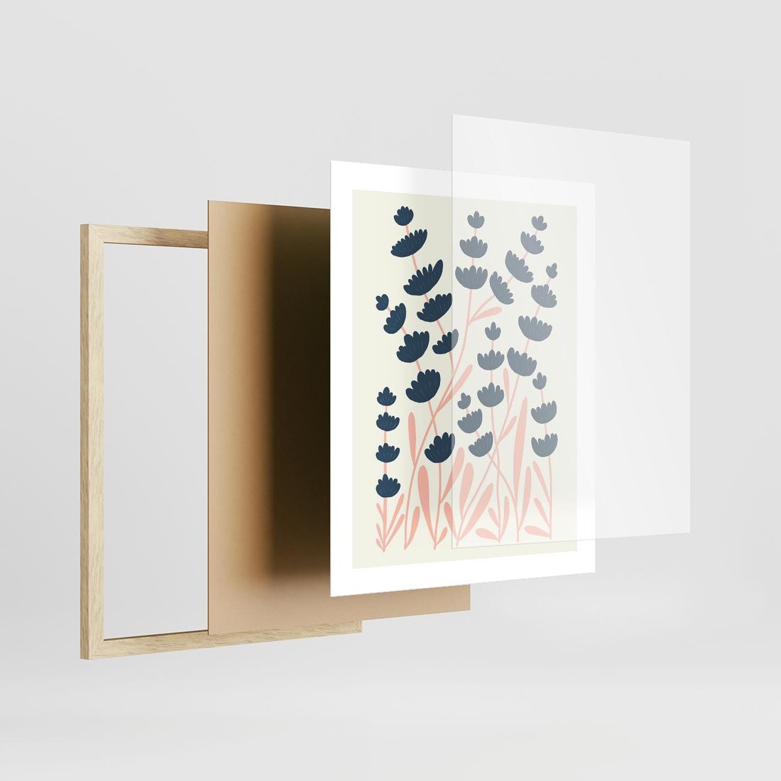 Ten minimalistyczny plakat przedstawia kwiaty i rośliny w delikatnych pastelowych kolorach, tworząc spokojny i urokliwy obraz. Sztuka ta wprowadza harmonię natury do przestrzeni, inspirując do wewnętrznej równowagi.