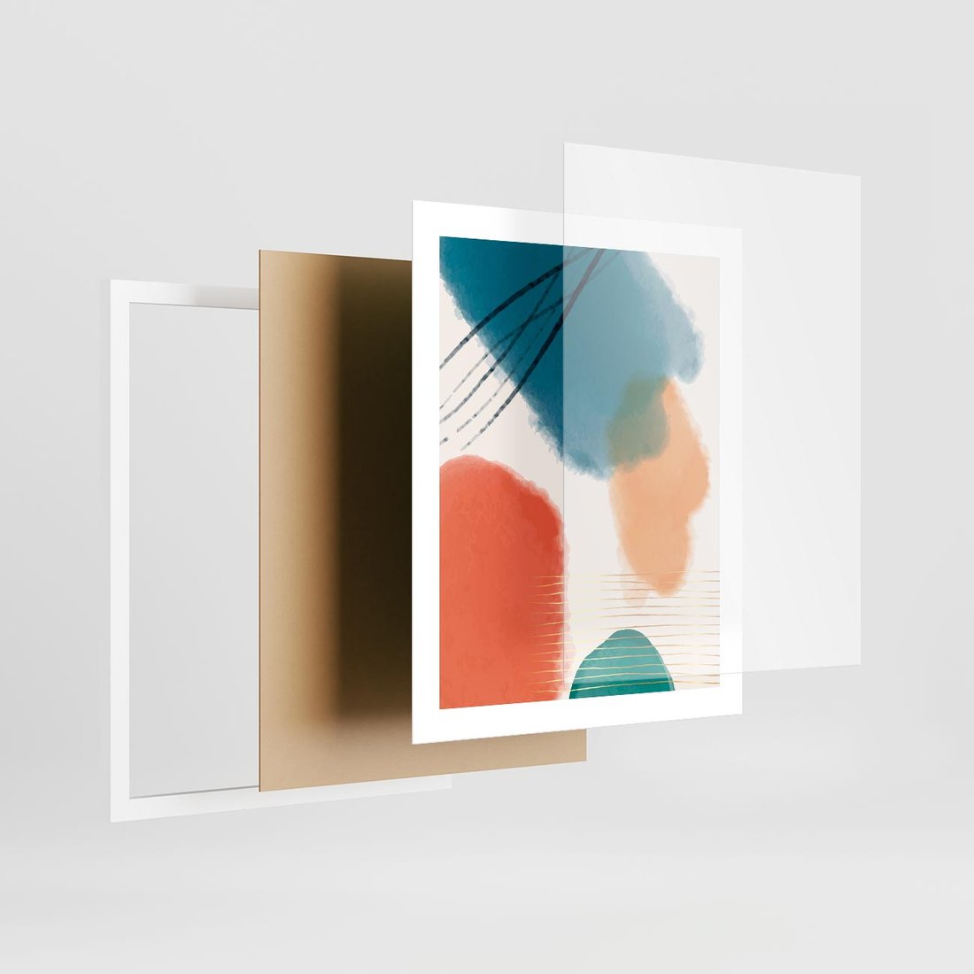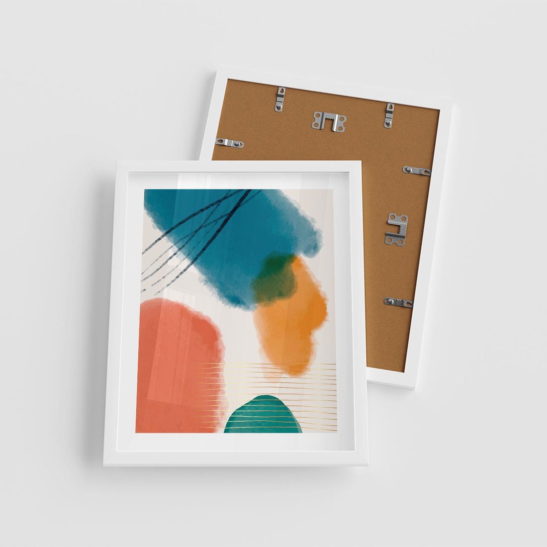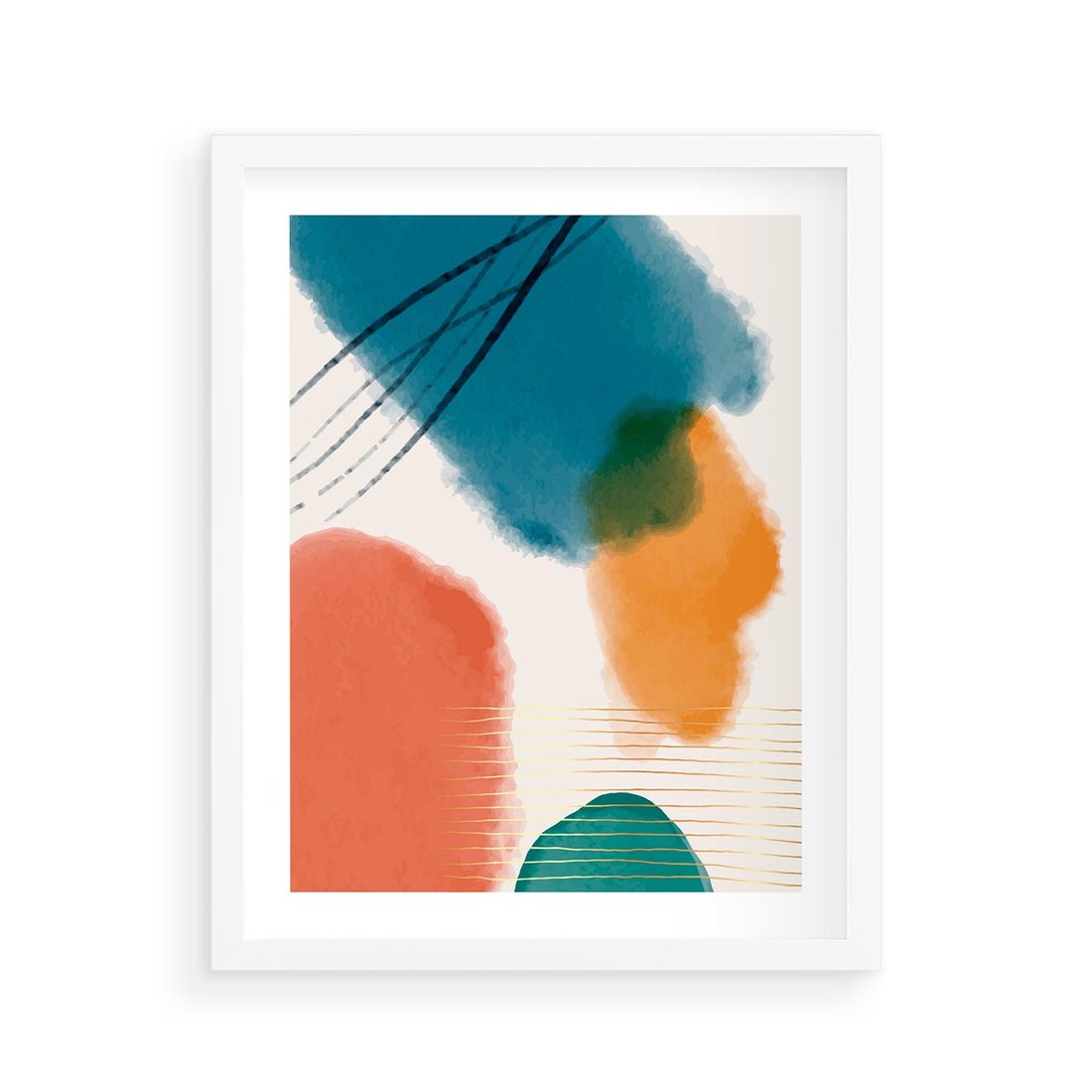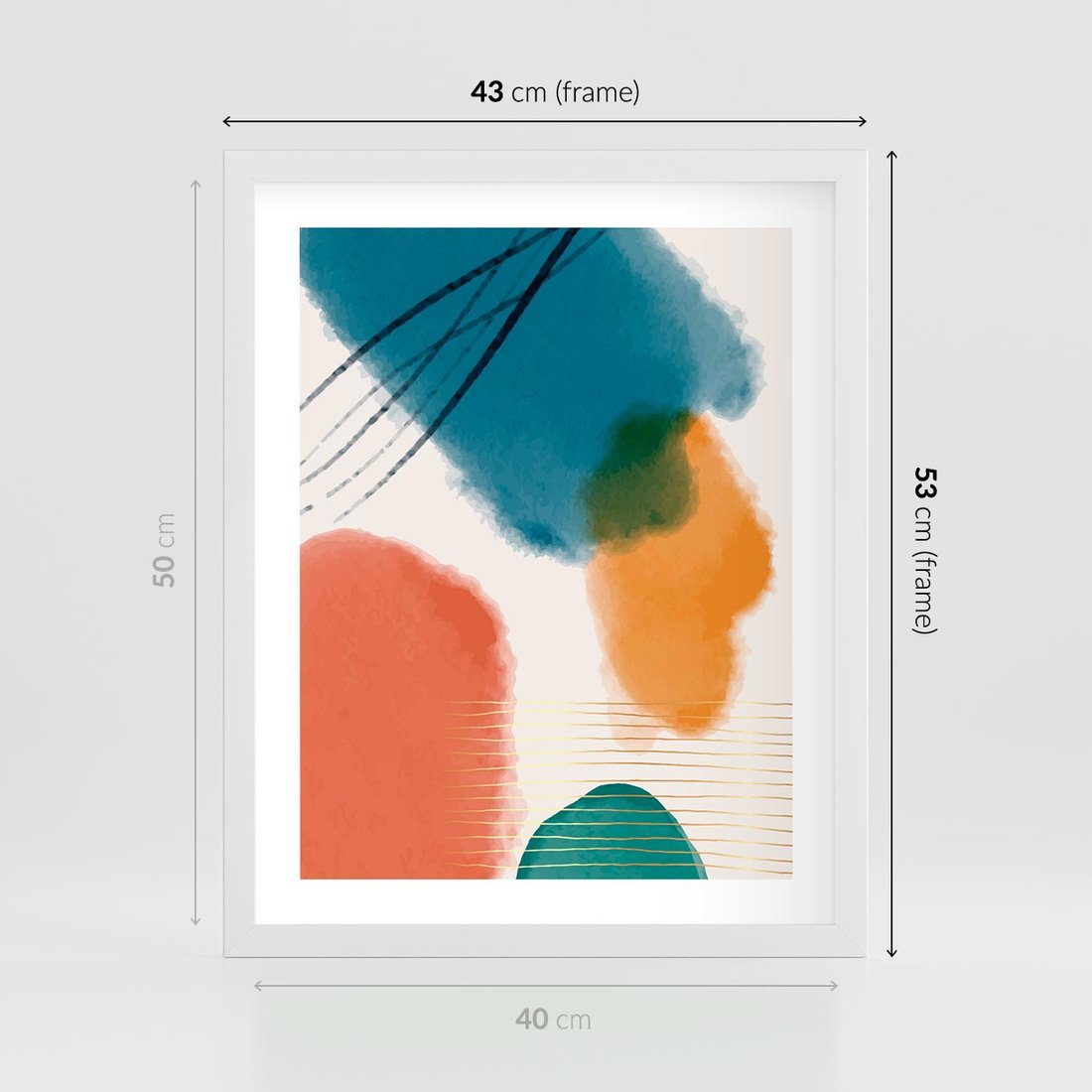 Plakat w ramie 40x50 - Migotliwe Pochwycenia - abstrakcyjne kolorowe plamy, akwarela - rama biała