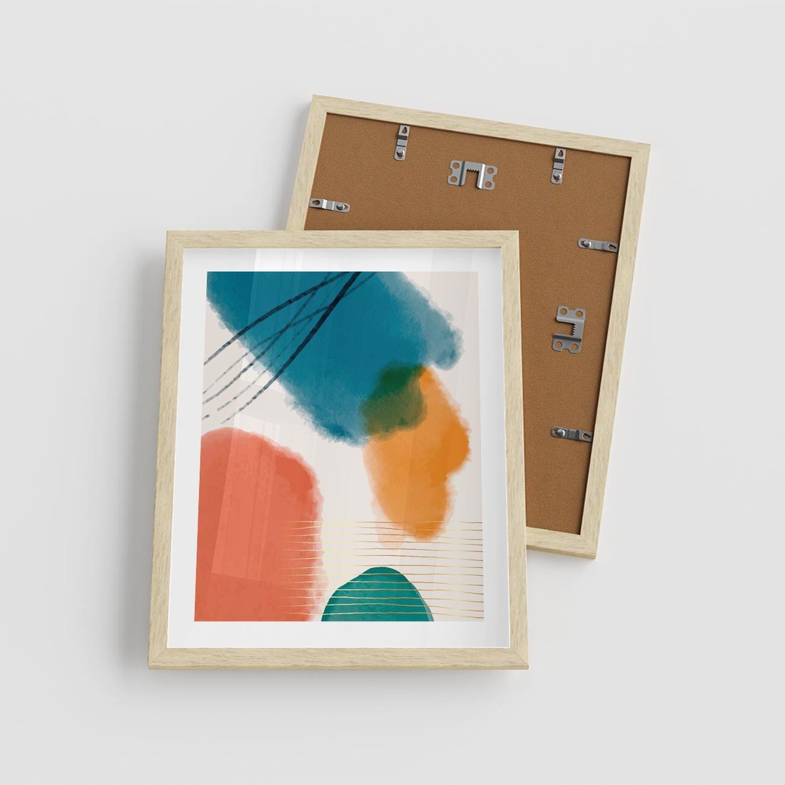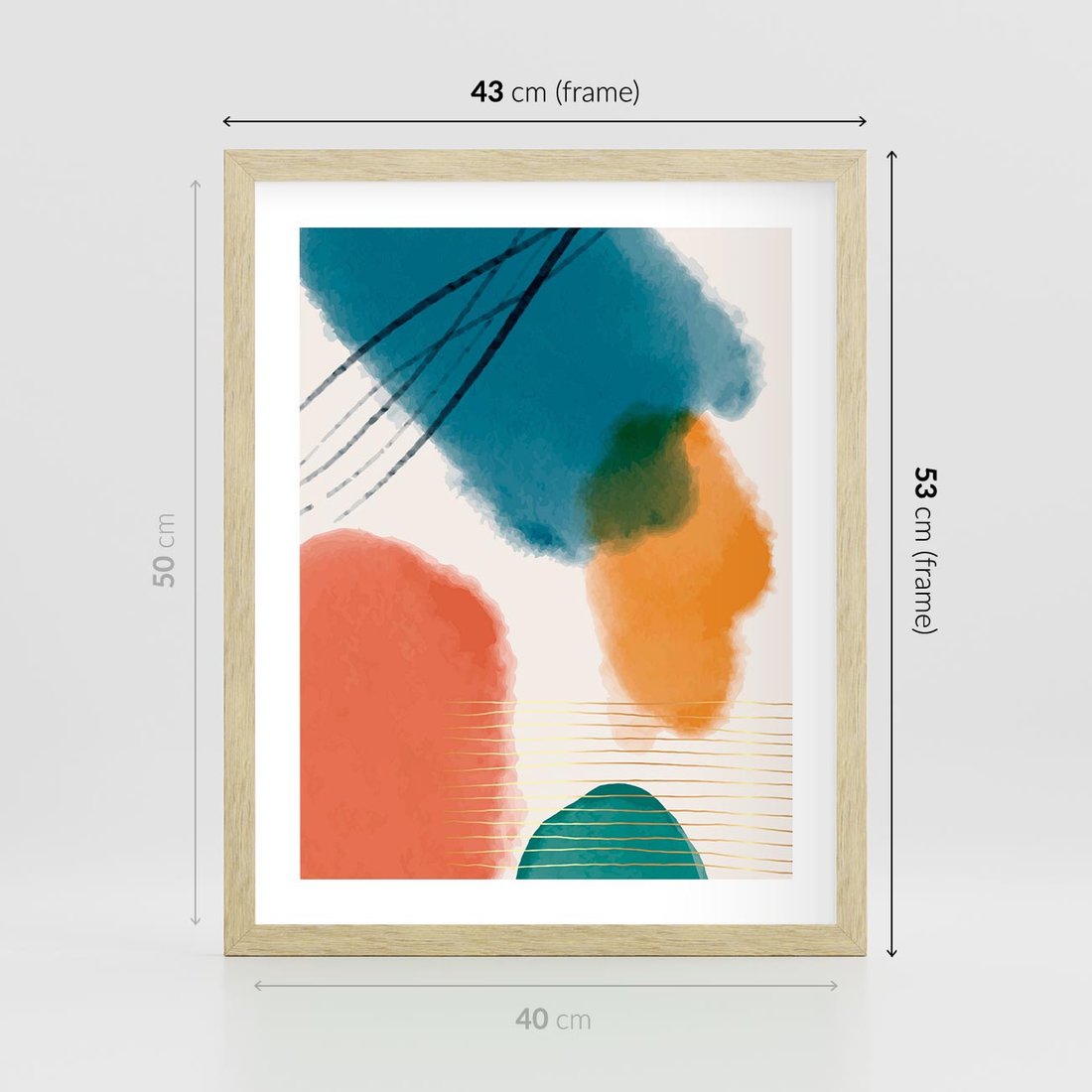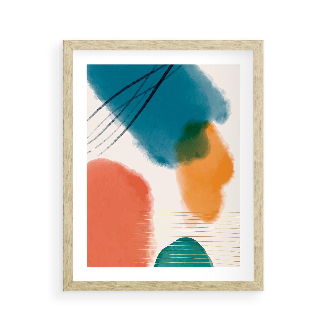 Plakat w ramie 40x50 - Migotliwe Pochwycenia - abstrakcyjne kolorowe plamy, akwarela - rama drewno