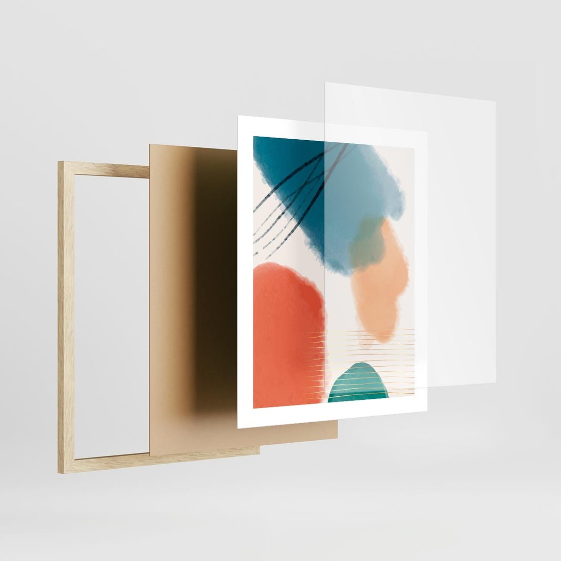 Nasz plakat to dynamiczna abstrakcja z kolorowymi plamami w akwarelowej technice, zdobiona subtelnie złotymi elementami. To artystyczne dzieło przynosi radość i energię do wnętrza, wprowadzając unikalny akcent artystyczny.