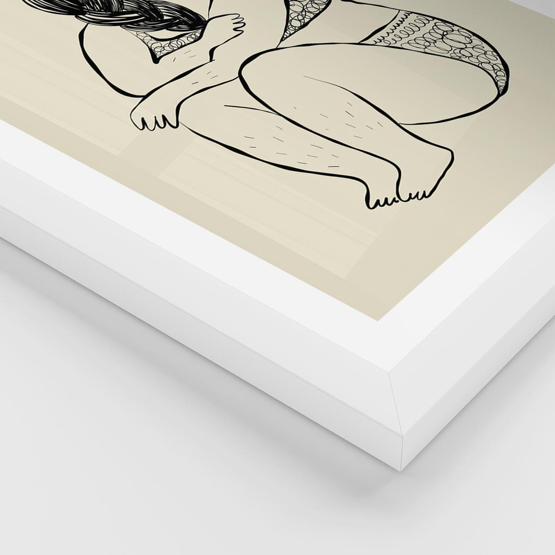 Plakat w ramie 40x50 - Migotliwe Refleksje - nowoczesny minimalistyczny rysunek, dziewczyna w bieliźnie - rama biała