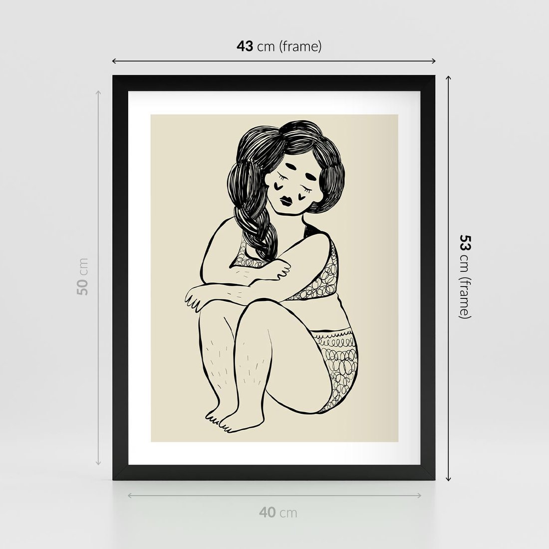 Plakat w ramie 40x50 - Migotliwe Refleksje - nowoczesny minimalistyczny rysunek, dziewczyna w bieliźnie - rama czarna