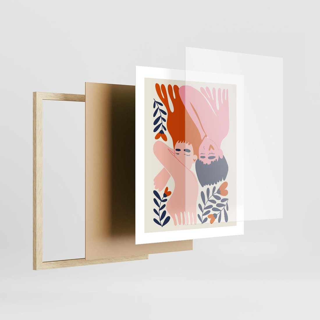 Plakat w ramie 40x50 - Miłość w Dwóch Sercach - miłość, para zakochanych - rama drewno