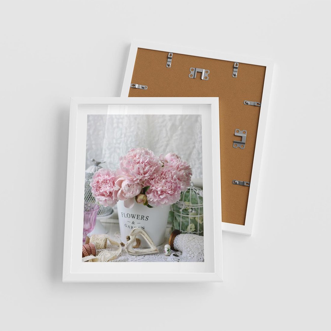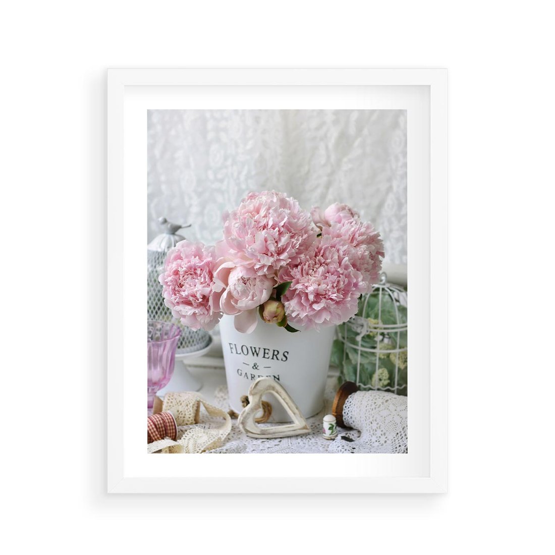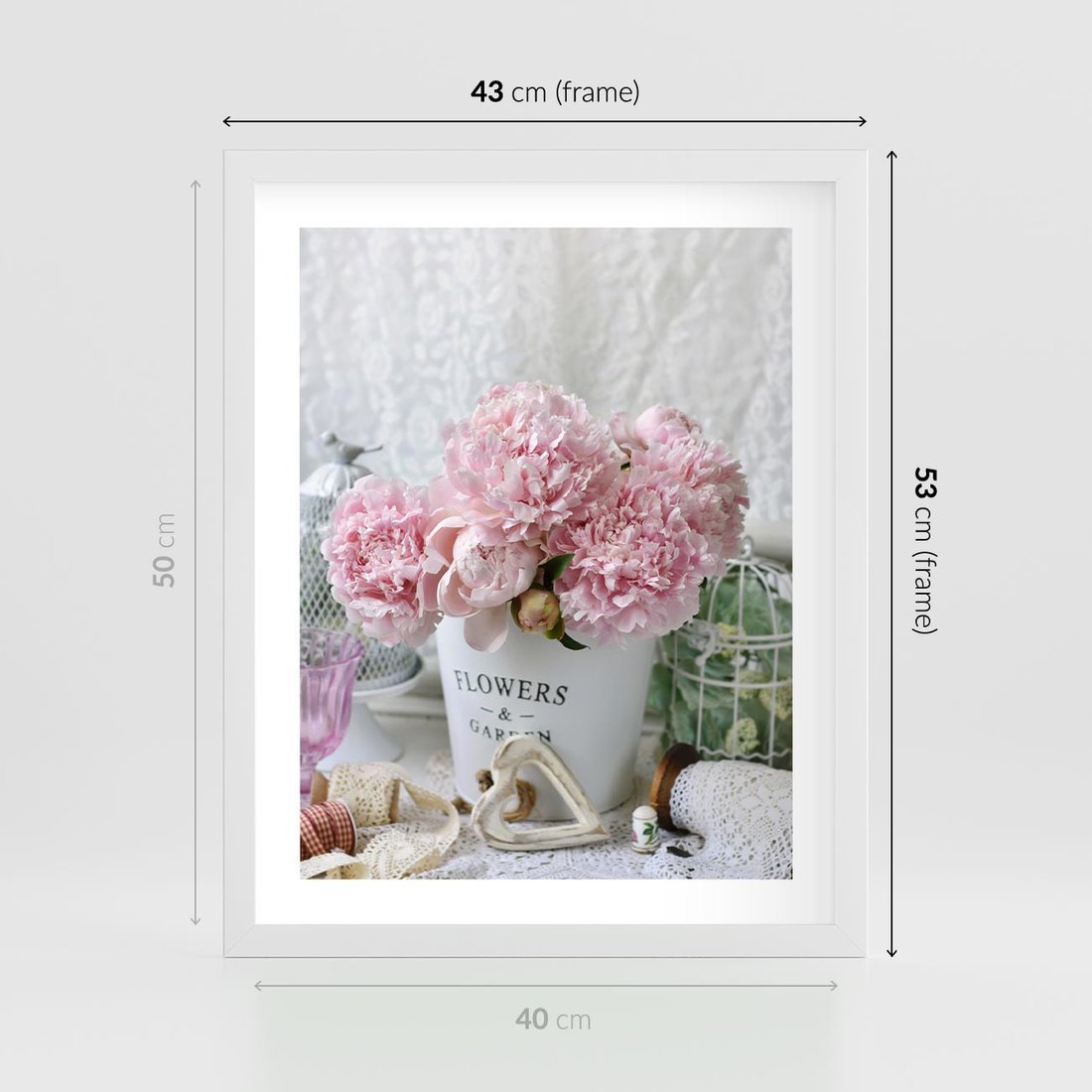 Plakat w ramie 40x50 - Miłość w powietrzu - kwiaty, romantyczne - rama biała