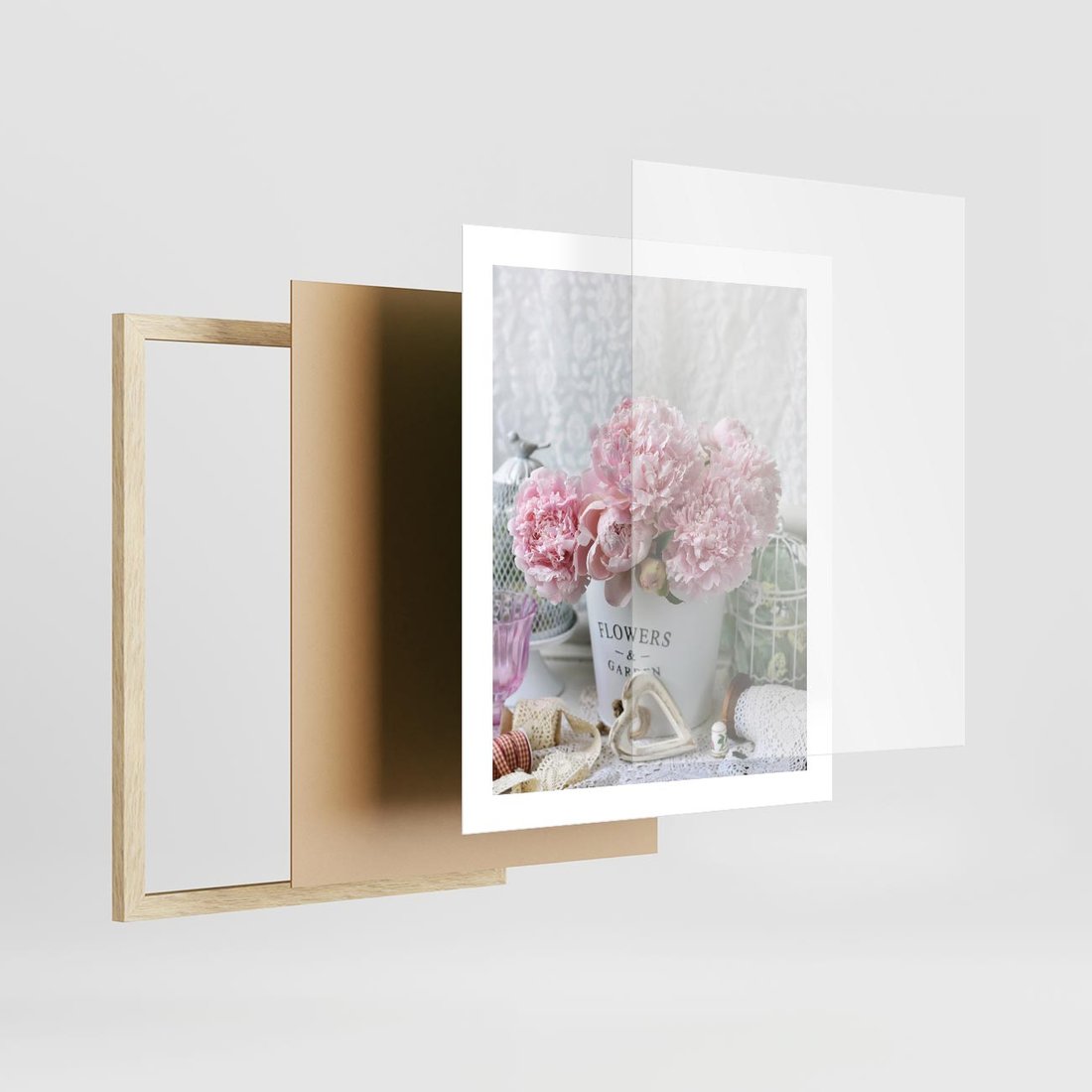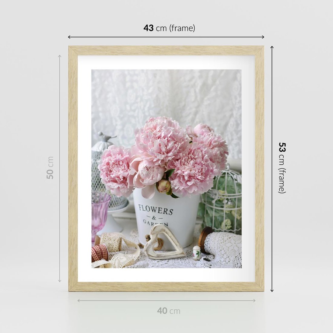 Plakat w ramie 40x50 - Miłość w powietrzu - kwiaty, romantyczne - rama drewno