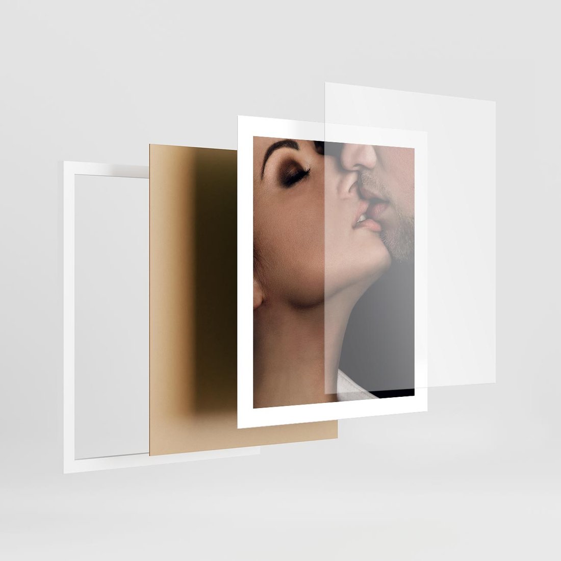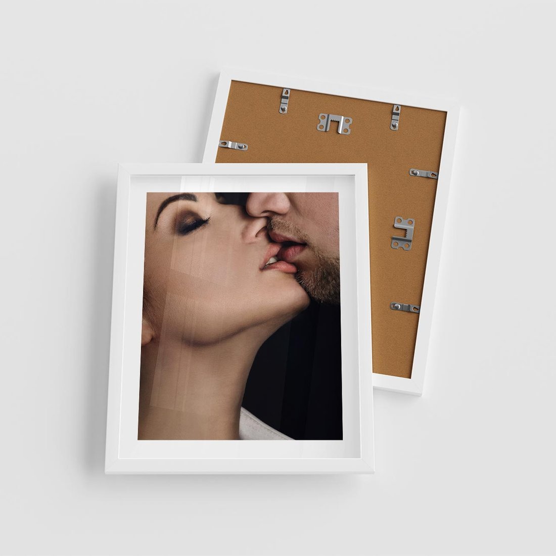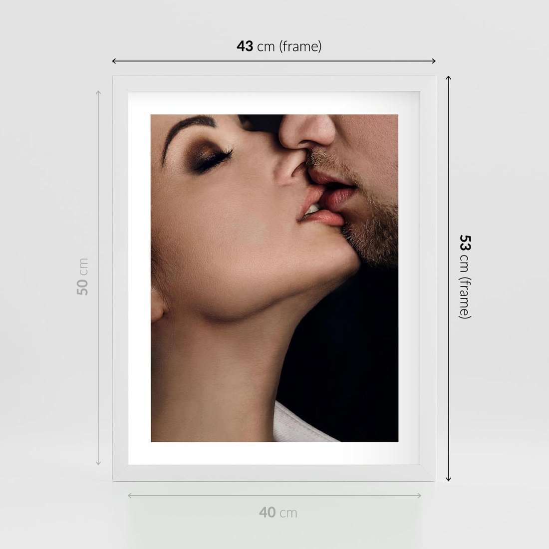 Plakat w ramie 40x50 - Miłosne Uczucia - kobieta, pocałunek - rama biała