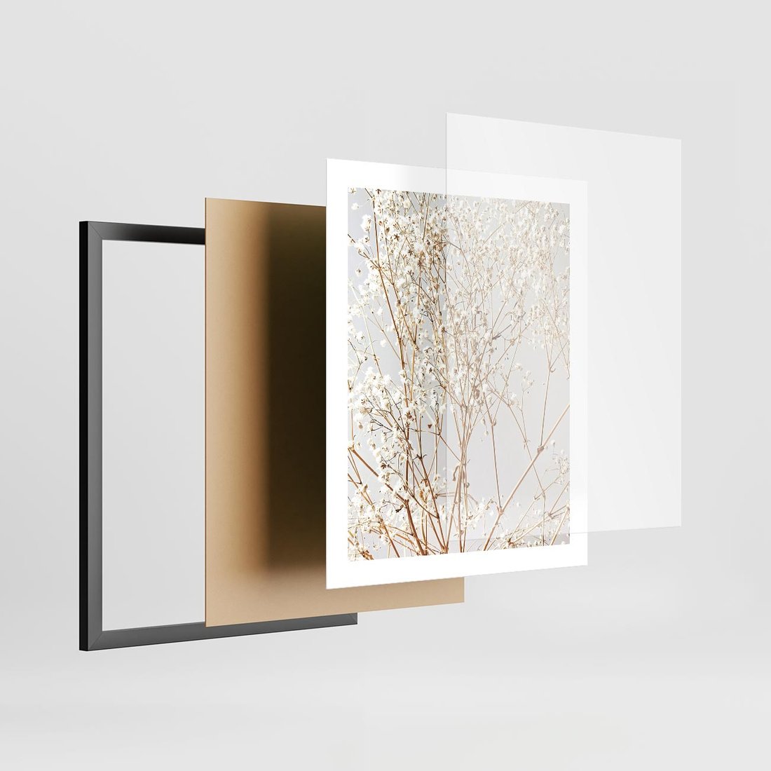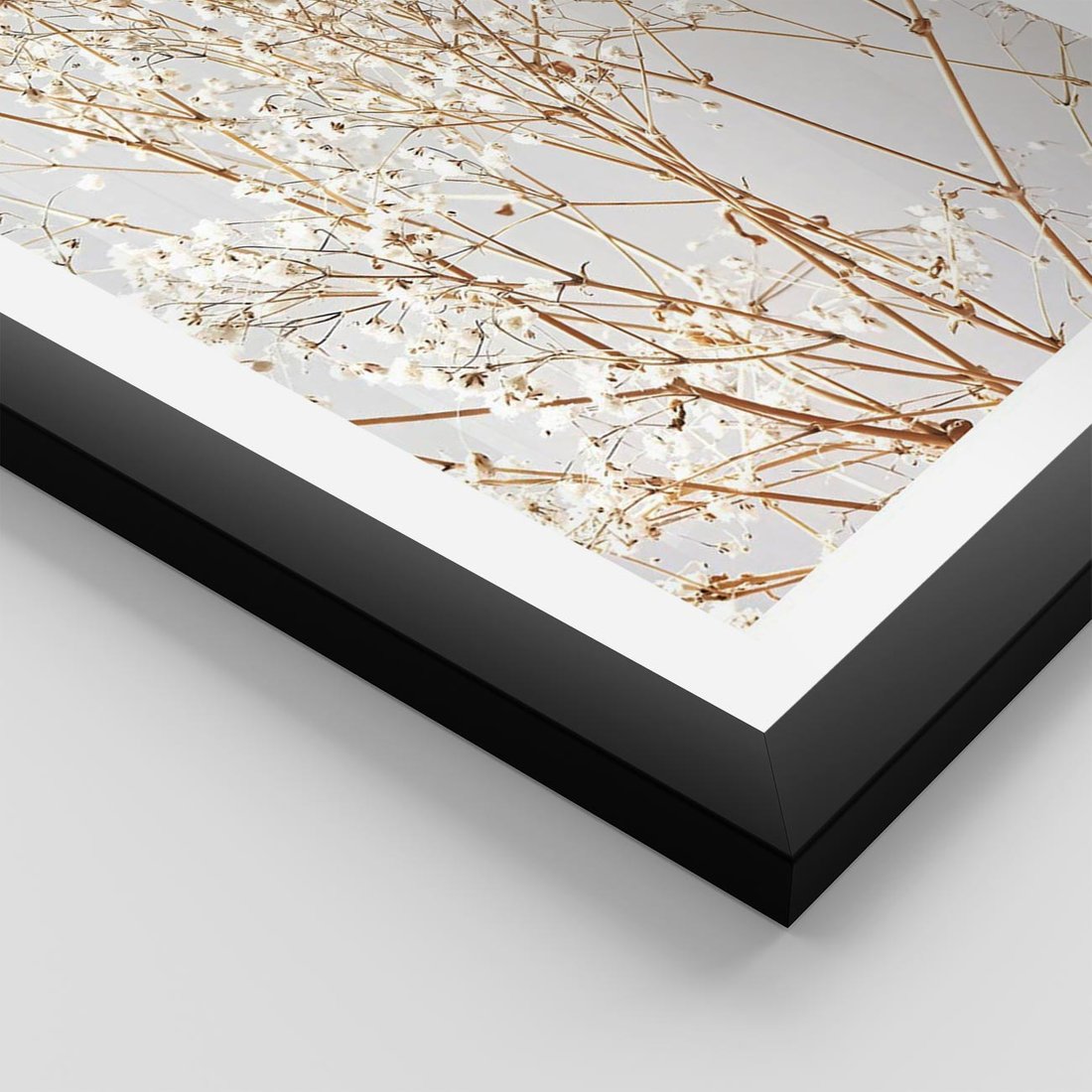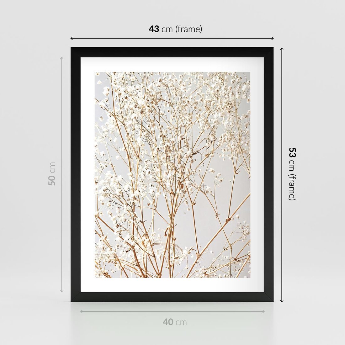 Plakat w ramie 40x50 - Minimalistyczna Delikatność - białe kwiaty, gipsówka - rama czarna
