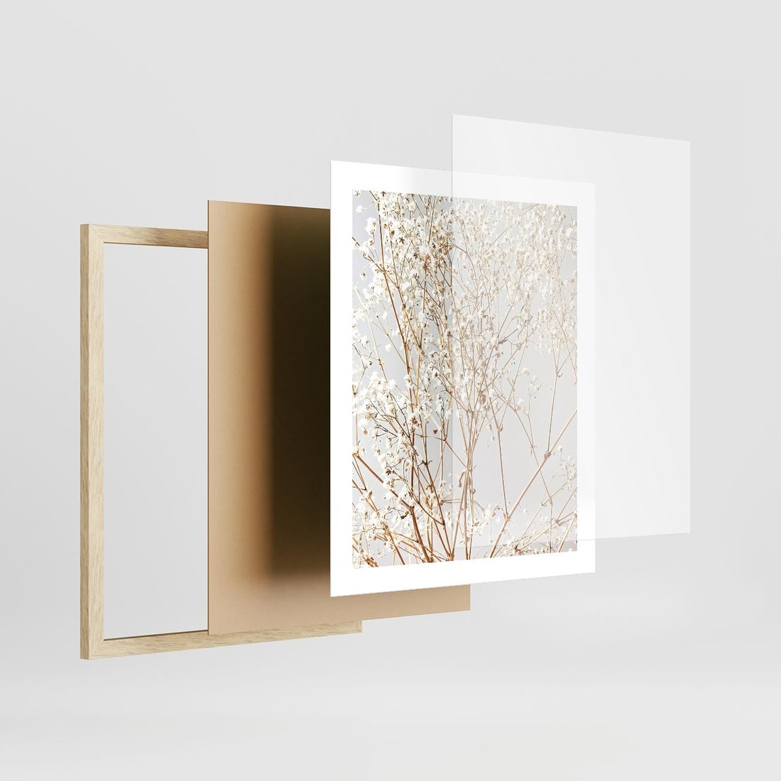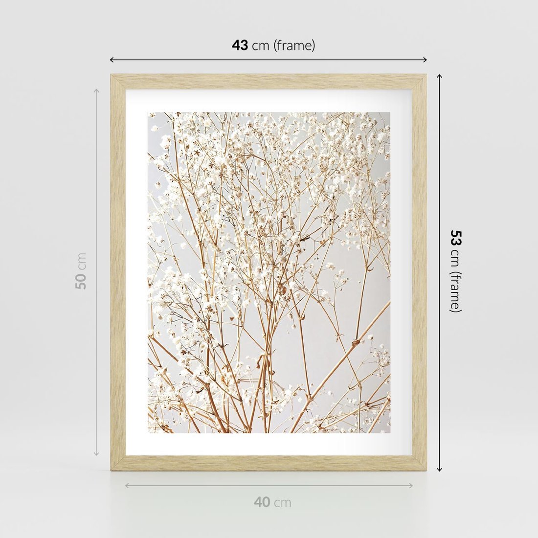 Plakat w ramie 40x50 - Minimalistyczna Delikatność - białe kwiaty, gipsówka - rama drewno
