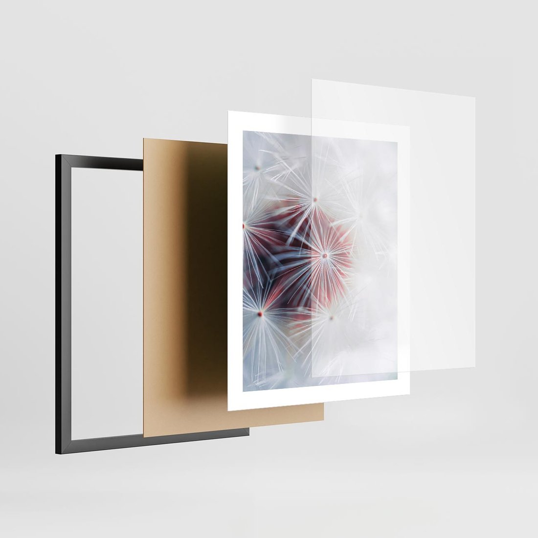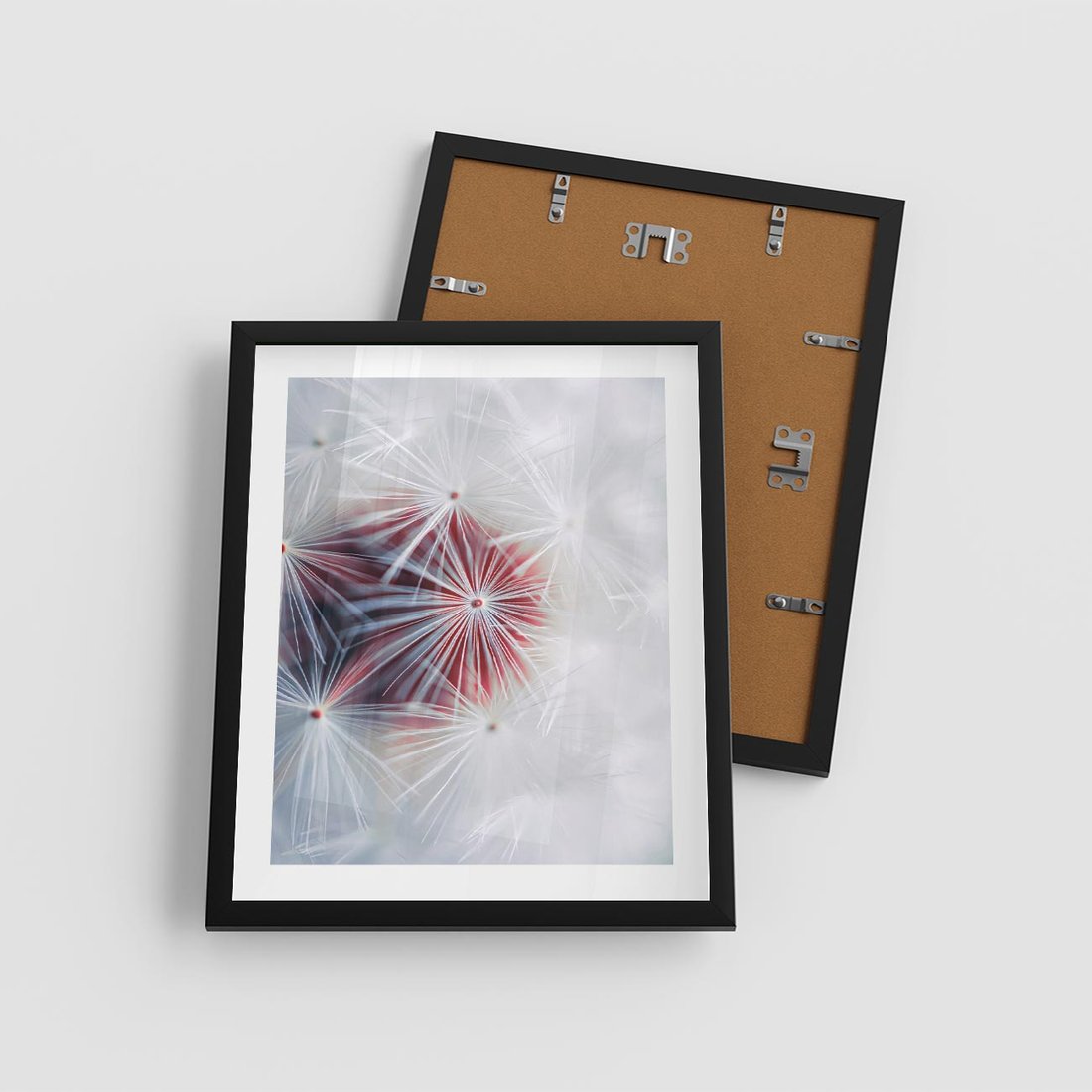 Plakat w ramie 40x50 - Minimalistyczna Delikatność - zbliżenie, dmuchawce - rama czarna