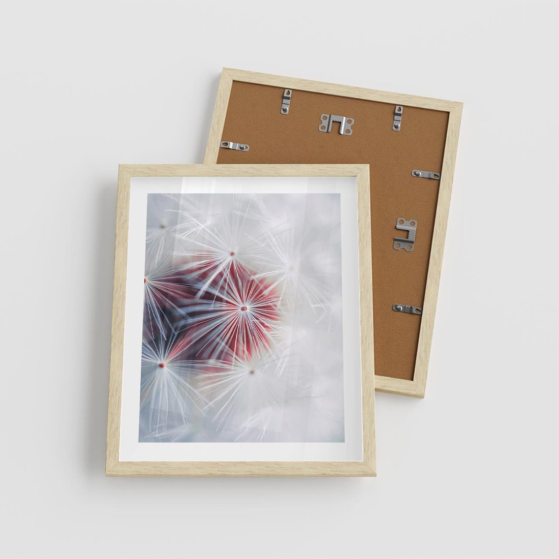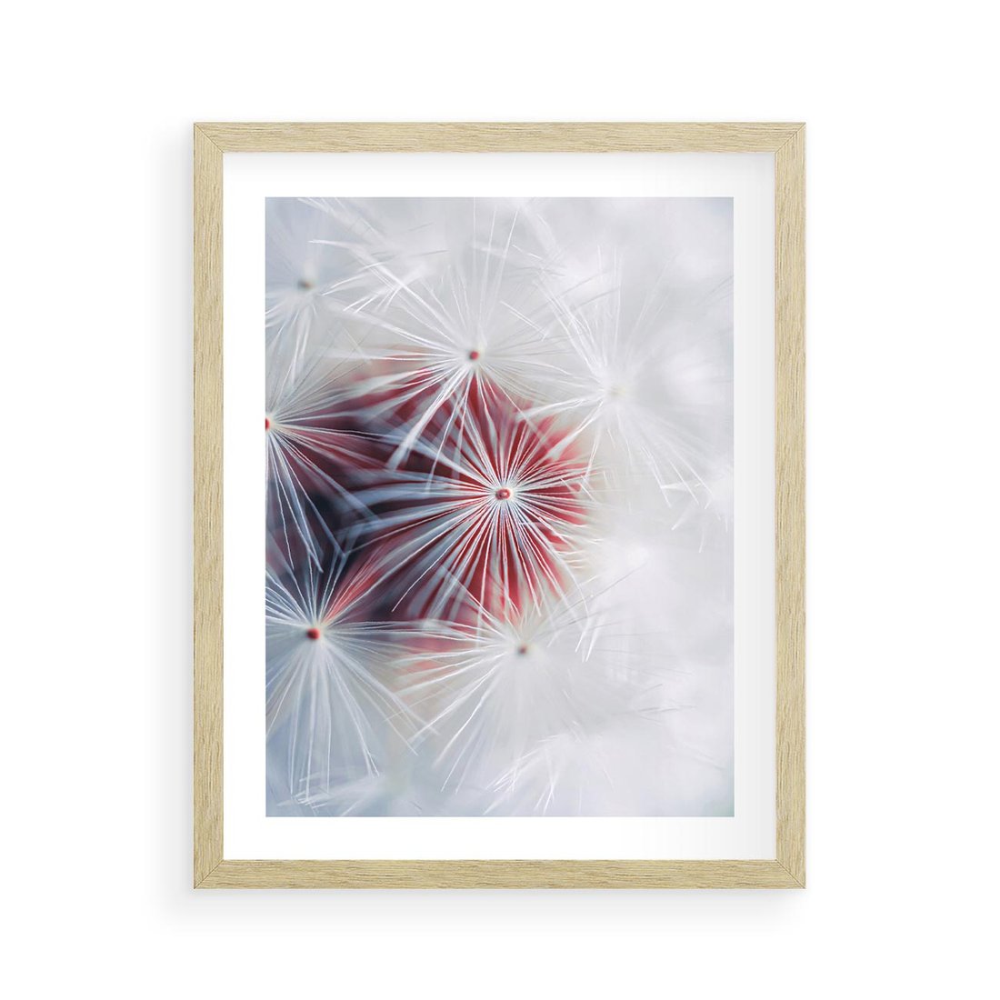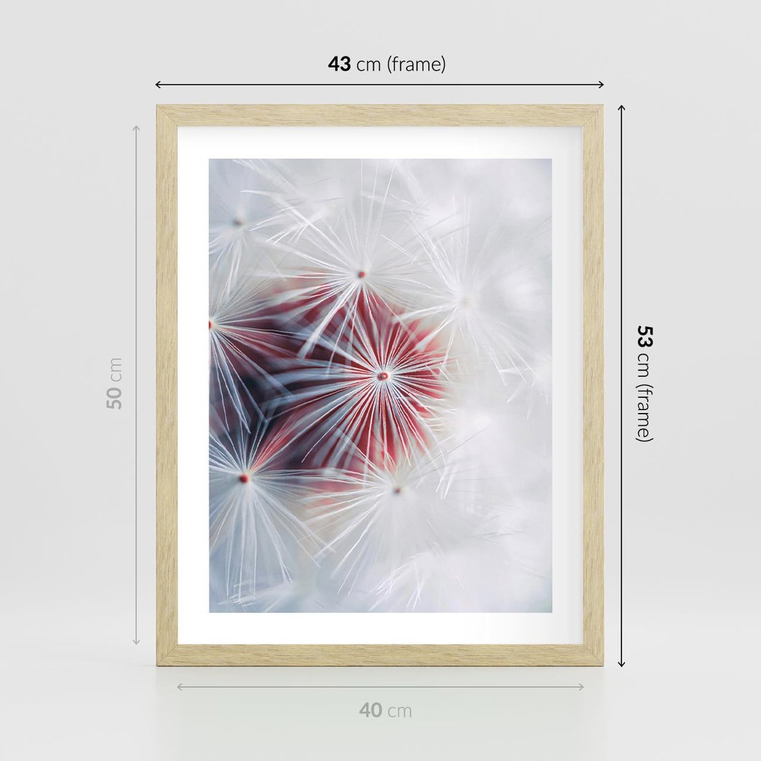 Plakat w ramie 40x50 - Minimalistyczna Delikatność - zbliżenie, dmuchawce - rama drewno