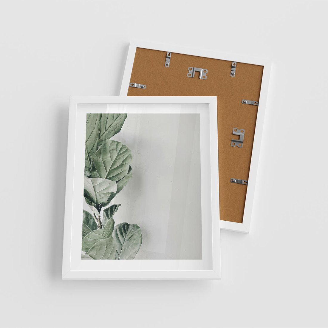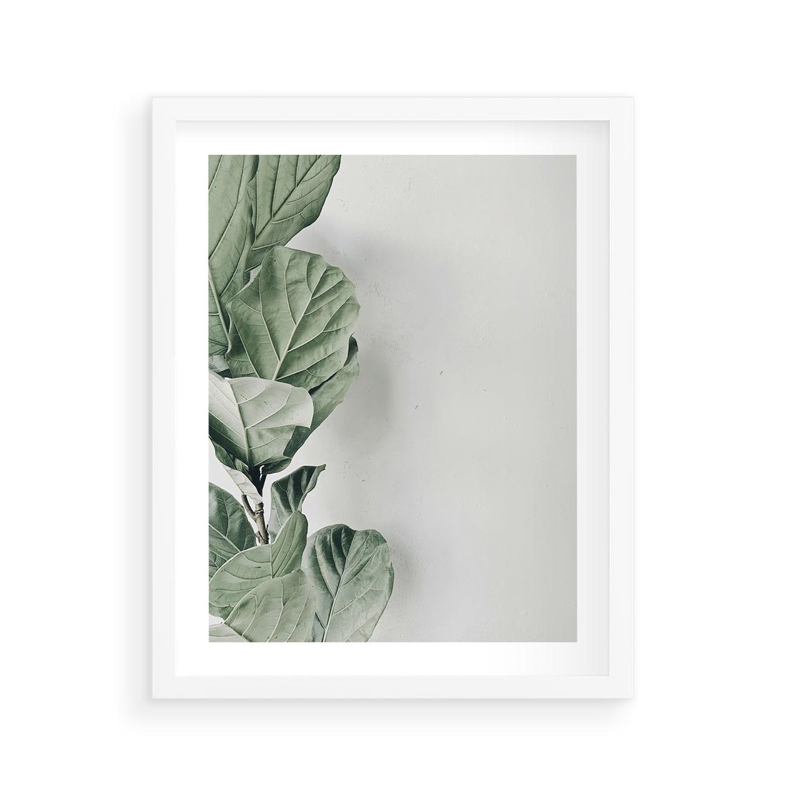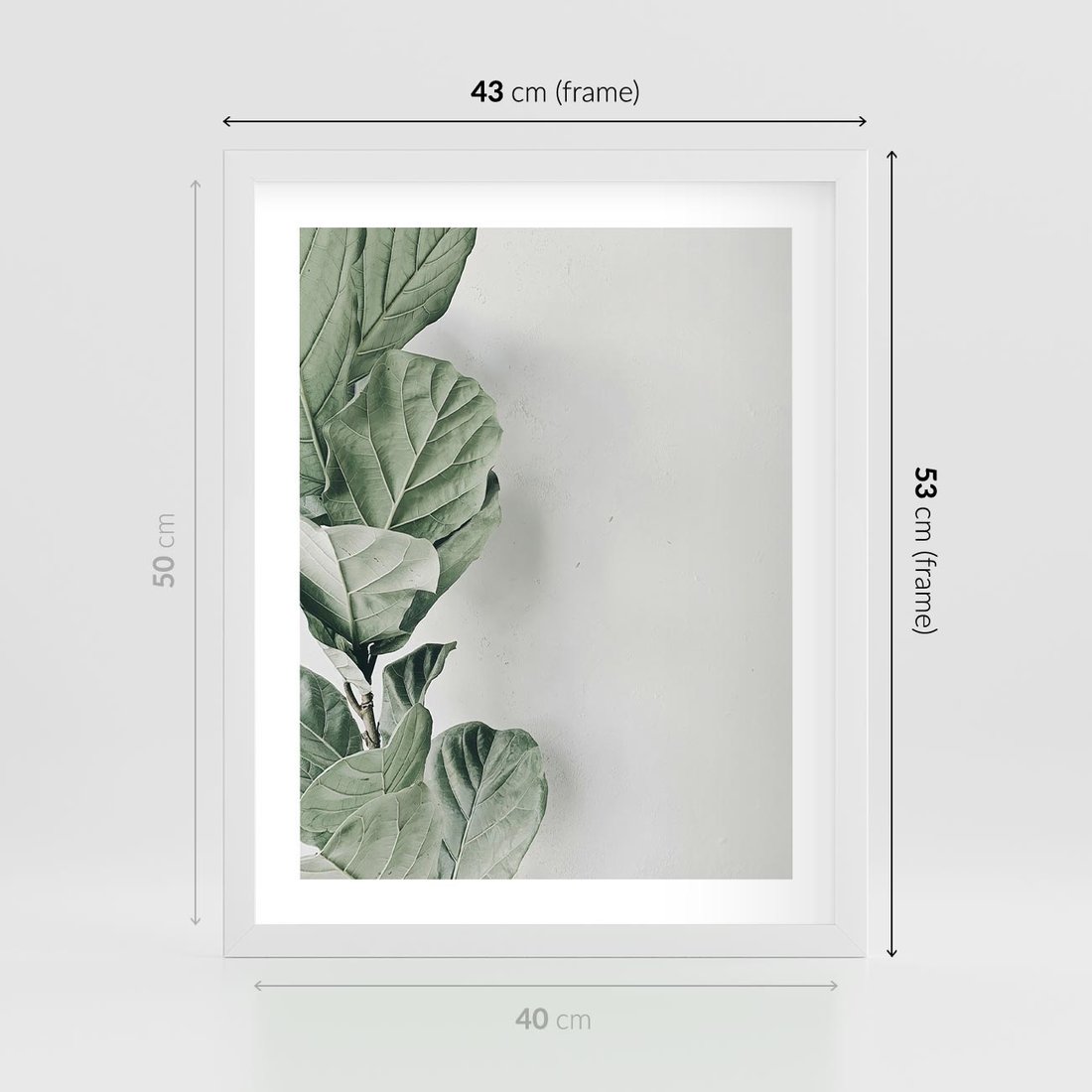 Plakat w ramie 40x50 - Minimalistyczna Harmonia: Zieleń Liści - zieone liście, kompozycja - rama biała