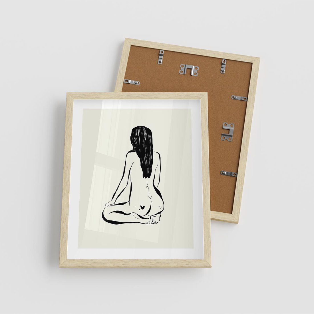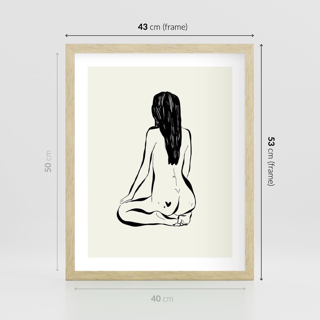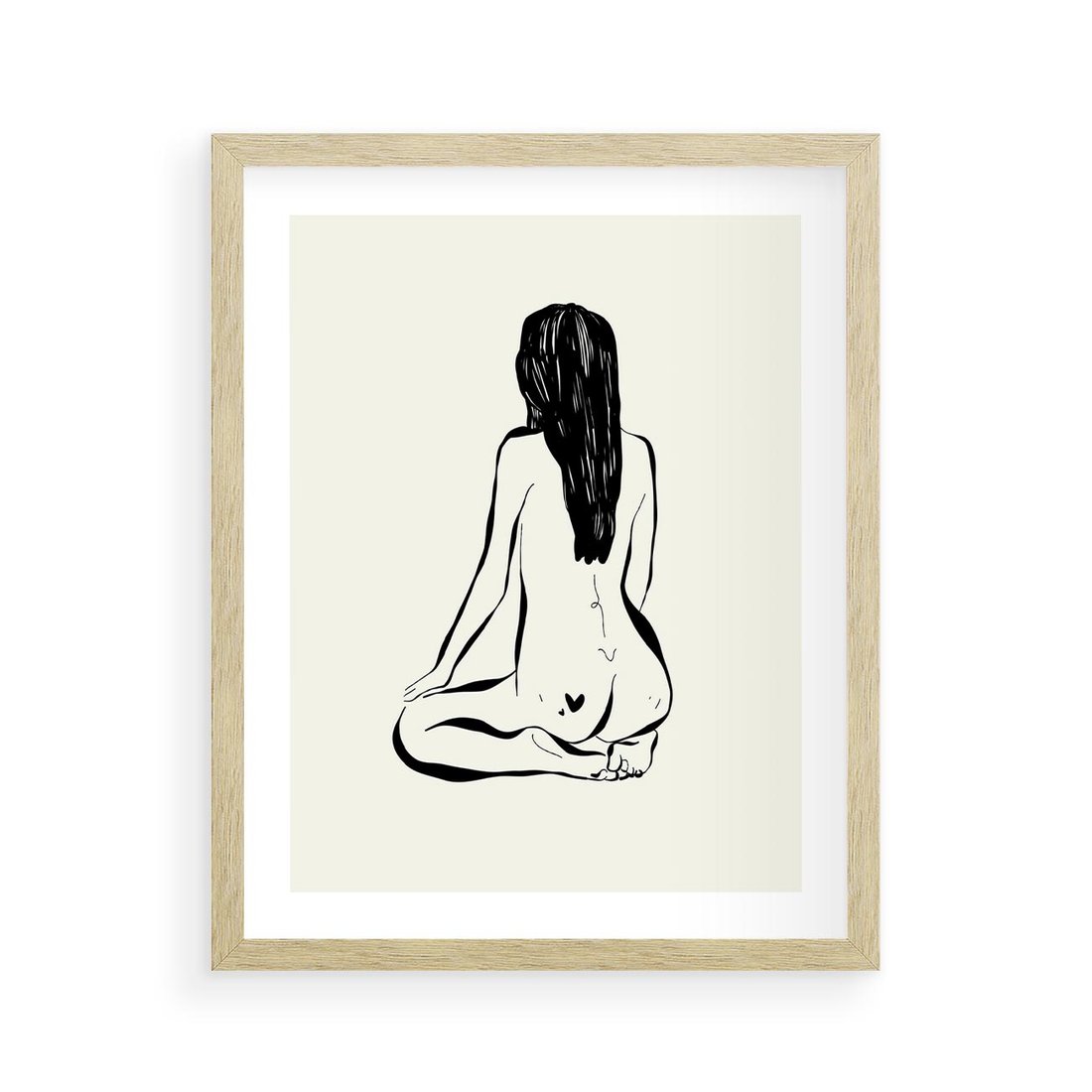 Plakat w ramie 40x50 - Minimalistyczna Piękność: Kobieta w Sztuce - grafika minimalizm, rysunek kobiety - rama drewno
