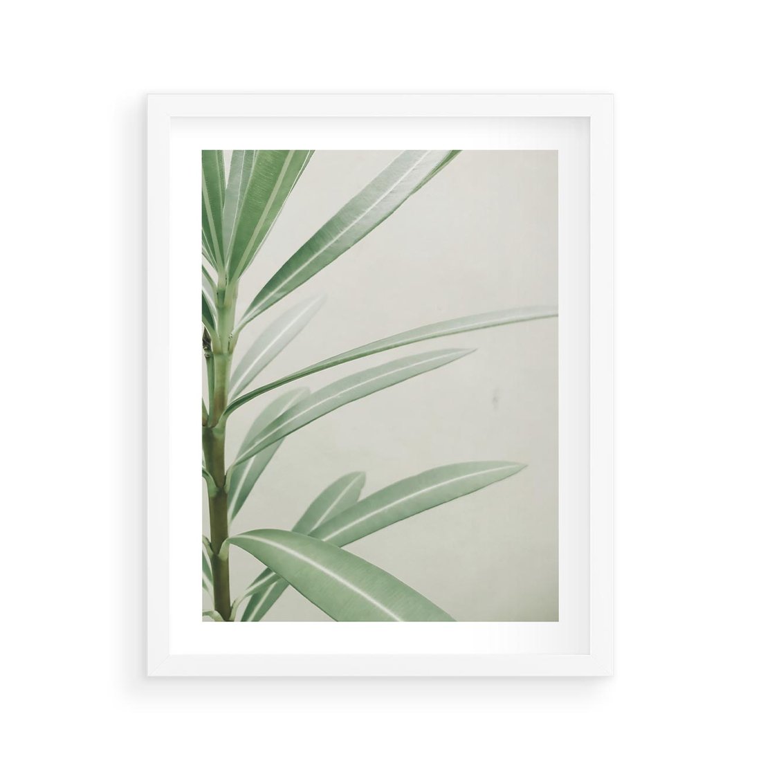Plakat w ramie 40x50 - Minimalistyczna Tropikalna Harmonia - tropikalna roślina, zielone liście - rama biała