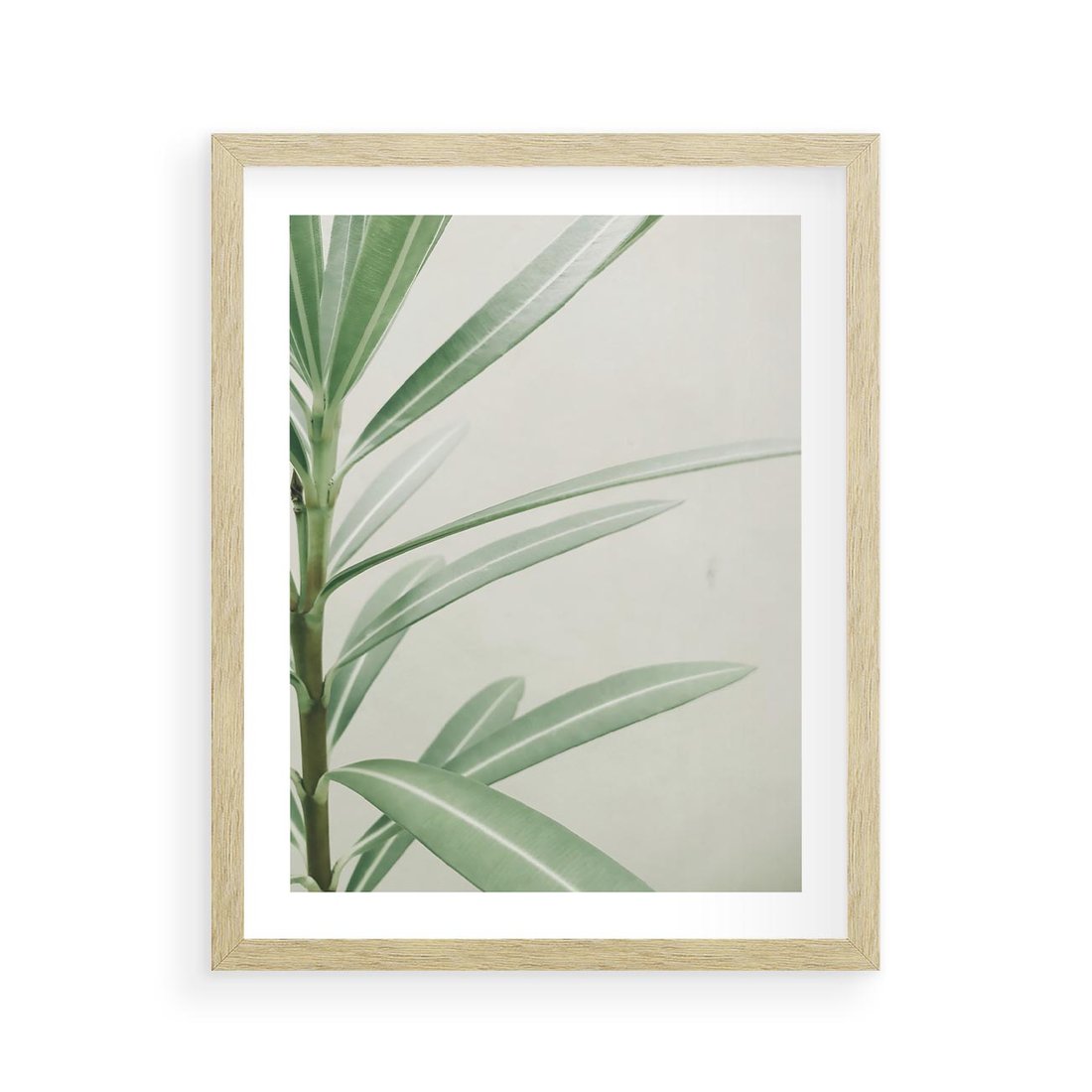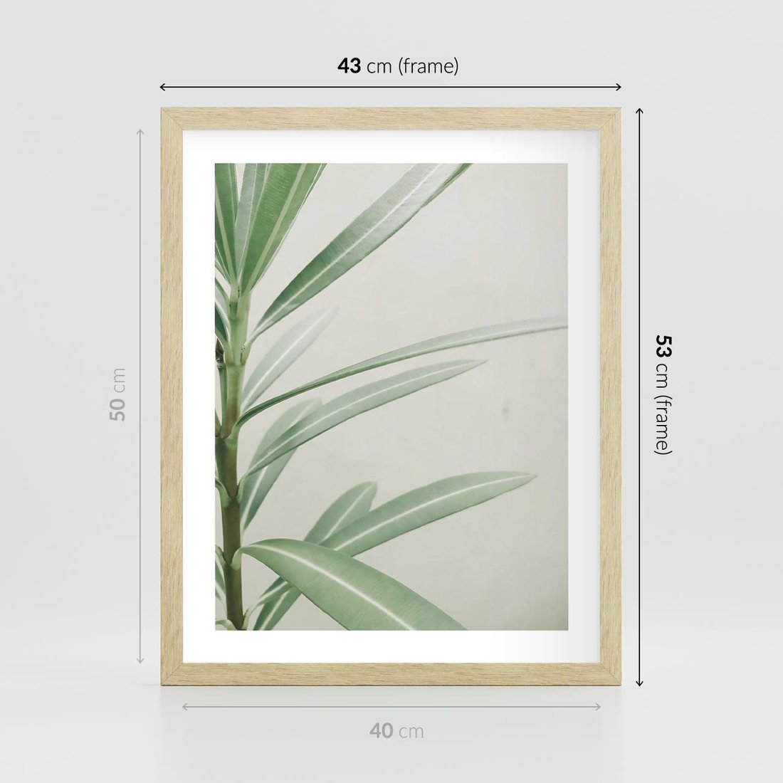 Plakat w ramie 40x50 - Minimalistyczna Tropikalna Harmonia - tropikalna roślina, zielone liście - rama drewno