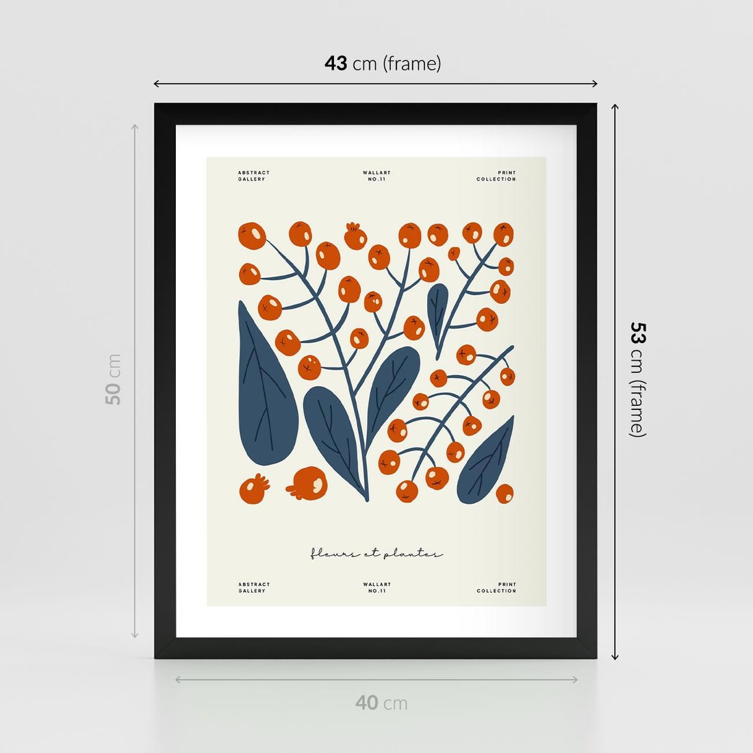Plakat w ramie 40x50 - Minimalistyczna Uroda Jarzębin - jarzębiny, niebieskie liście - rama czarna