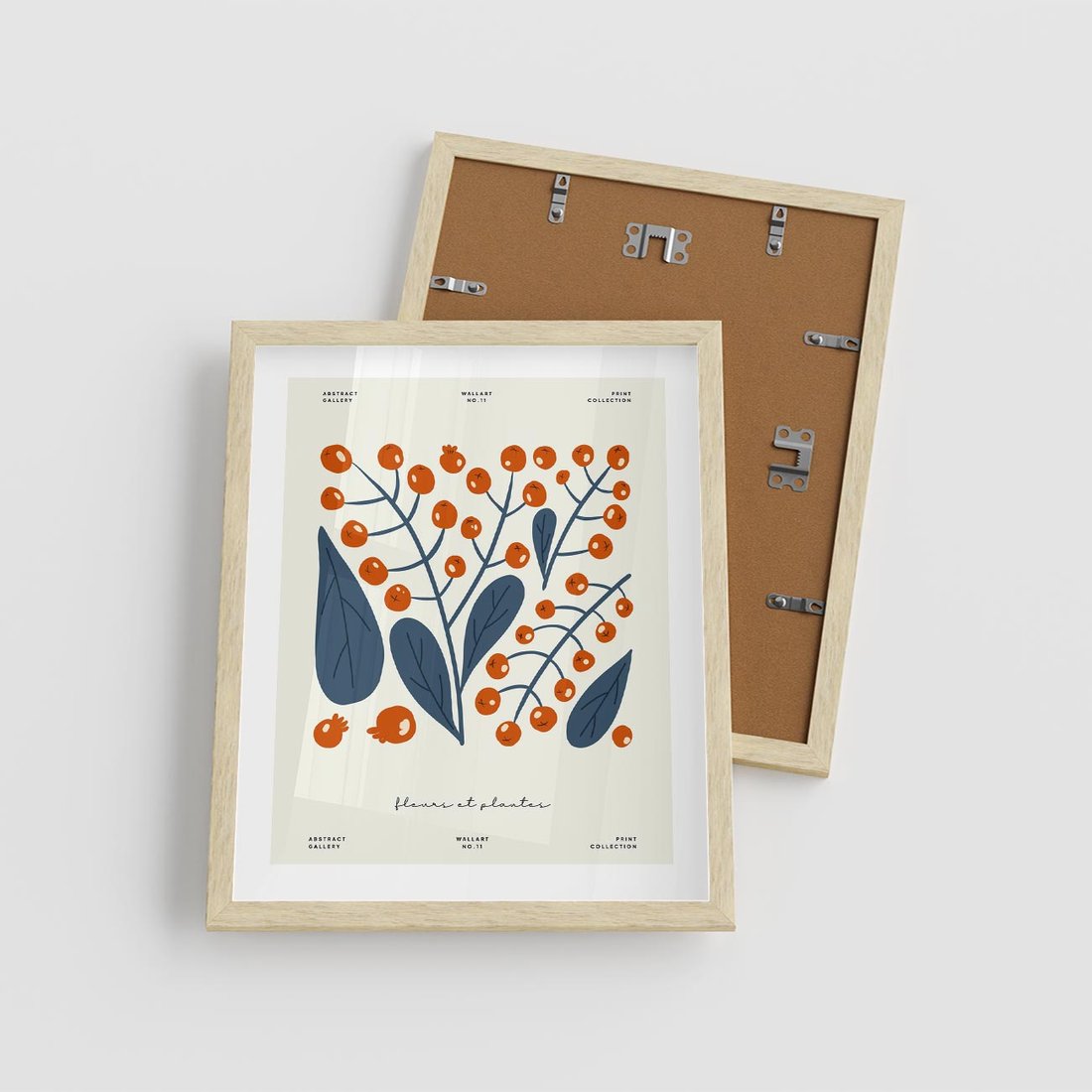 Plakat w ramie 40x50 - Minimalistyczna Uroda Jarzębin - jarzębiny, niebieskie liście - rama drewno